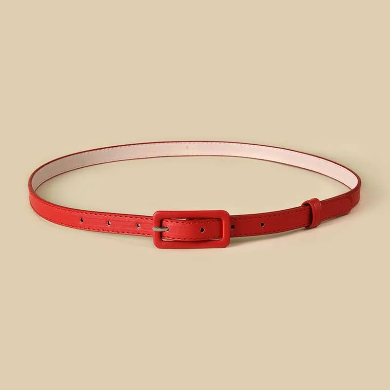 Black White Red Blue PU Leather Belts Thin Skinny Waistband Adjustable Leather Belt Sweetness Women Female Belts For Dress