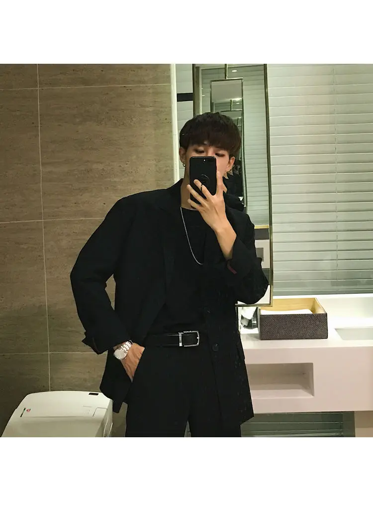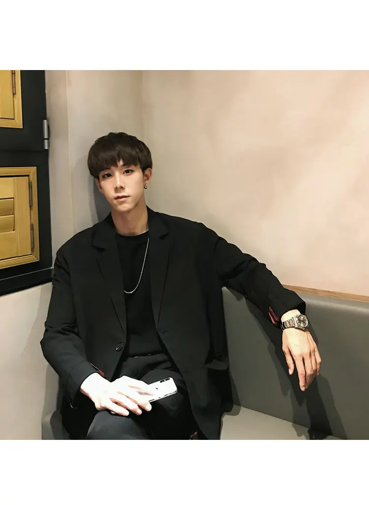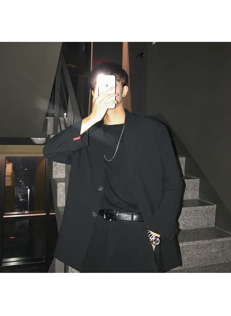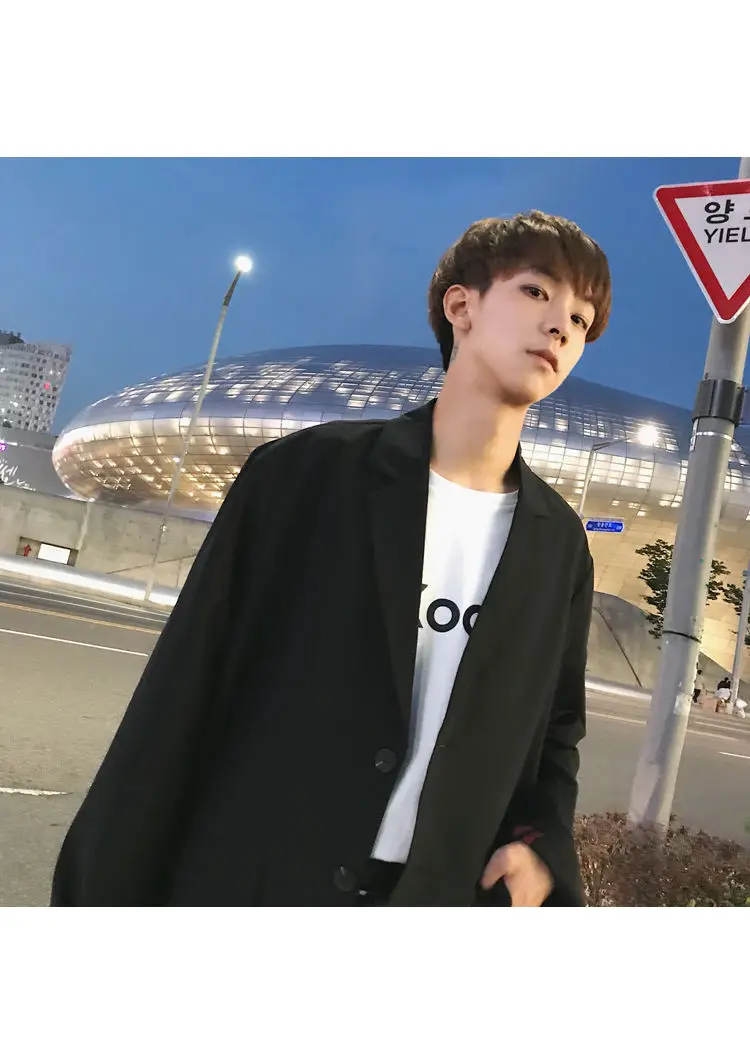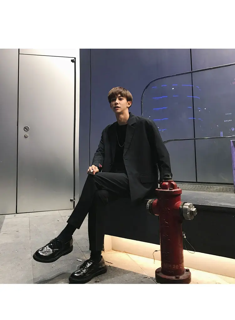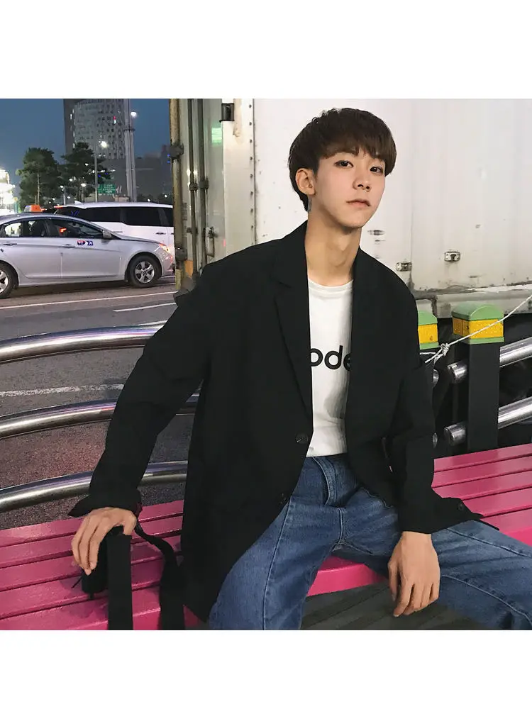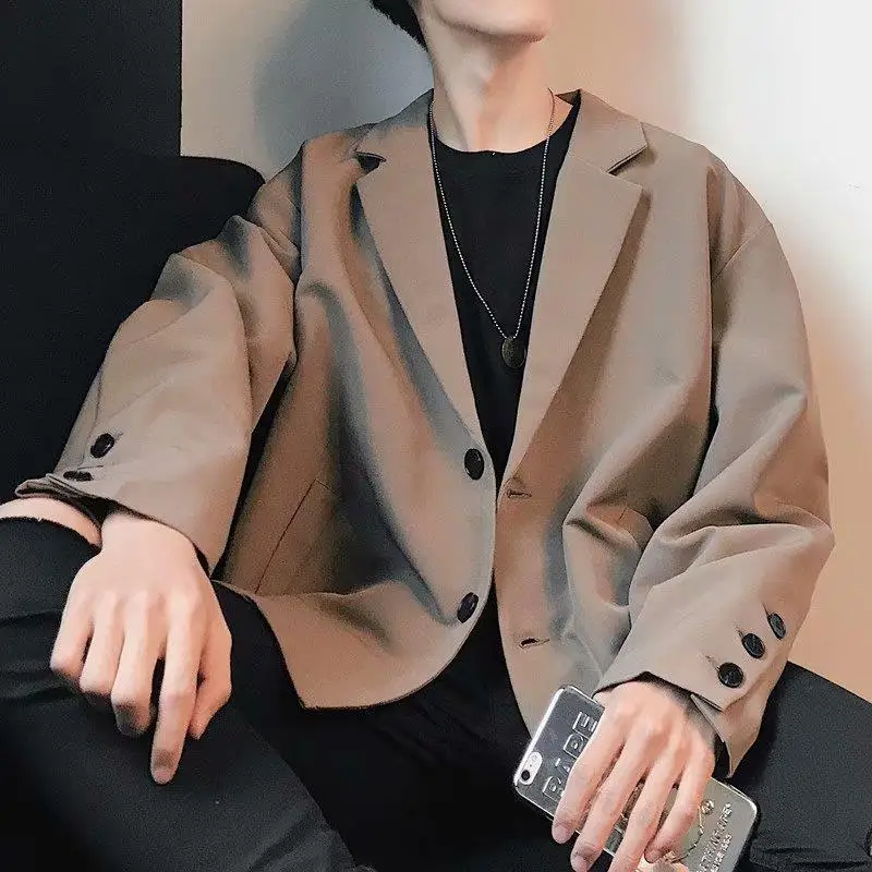 Blazers Men Solid Single Breasted Leisure Chic Korean Style Highs Street Suits Mens Blazer Harajuku BF All-match Daily Outwear