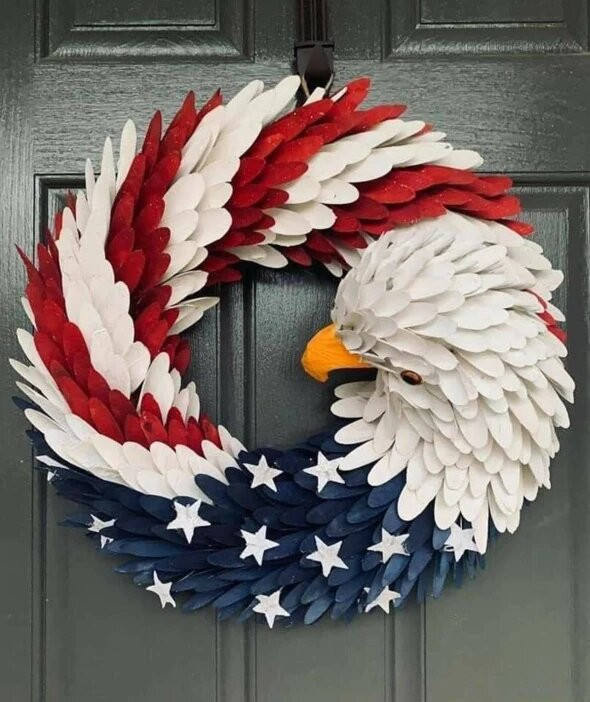 This handcrafted patriotic wreath from will add a pop of color to any front door this President’s Day. This Patriotic Wreath is a festive expression of American pride, bursting with the iconic red, white and blue.
