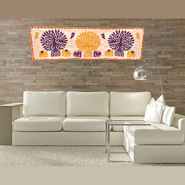 The artwork embroidered so expertly on high-quality cotton canvas makes this wall hanging evoke peace and warmth. The pale shades that influence vintage tastes and Art Deco motifs are also present in various settings like those found inside old homes right through to contemporary styles.