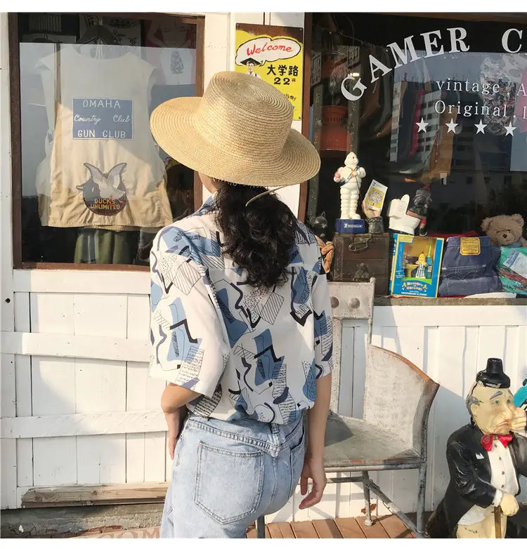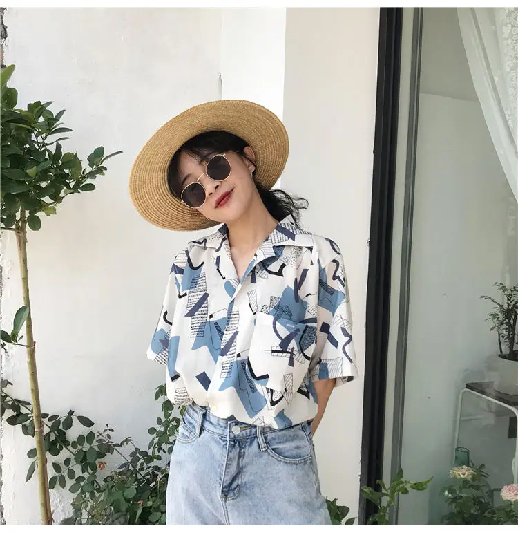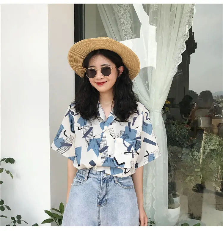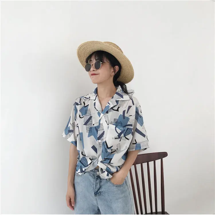 Blouses Women Chic Vintage Printed Harajuku Ladies Streetwear Popular All-match Short Sleeve Pocket Womens Shirts Top