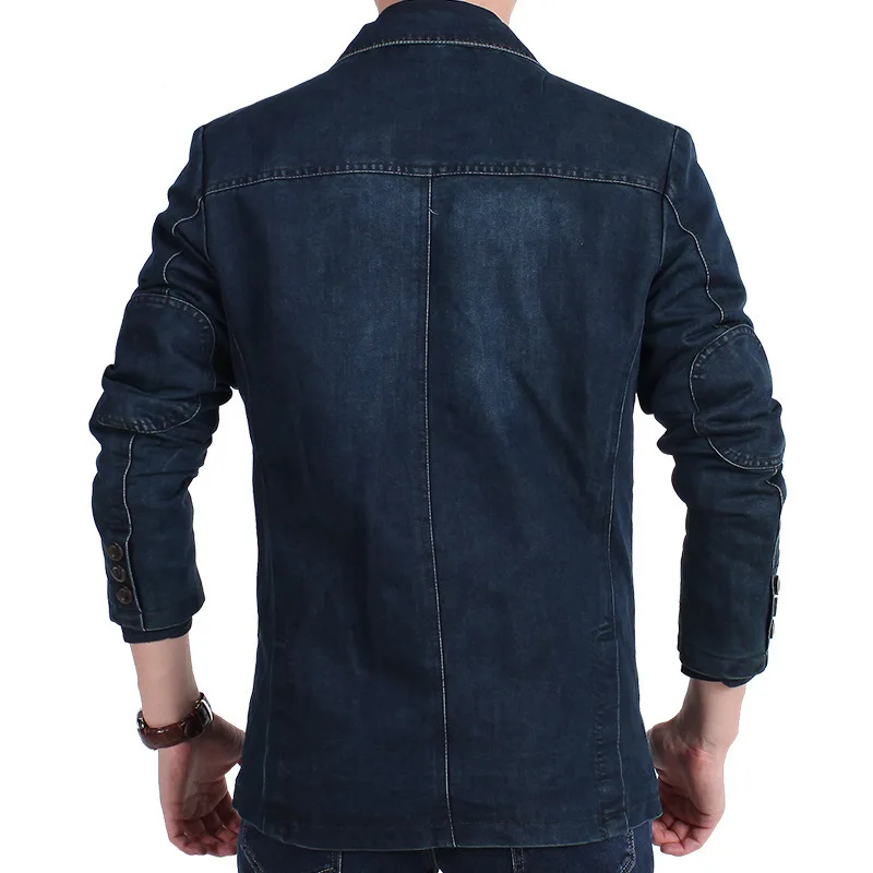 Long sleeve with elbow patches and three buttons, side patched pockets and inner pocket, solid color(blue/dark blue)