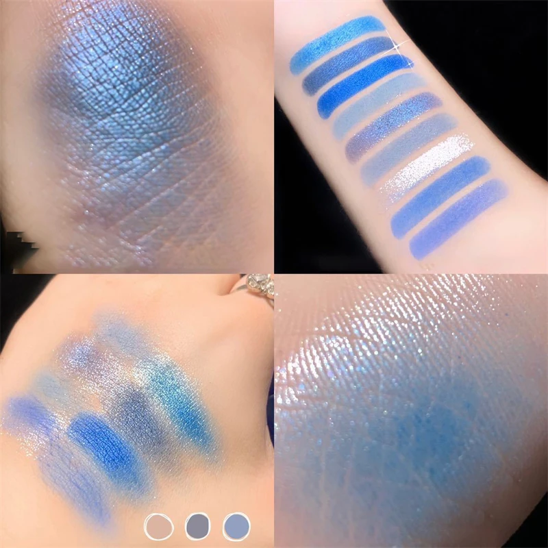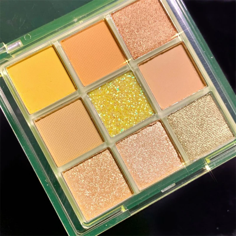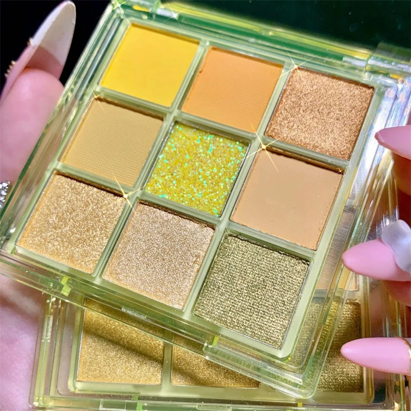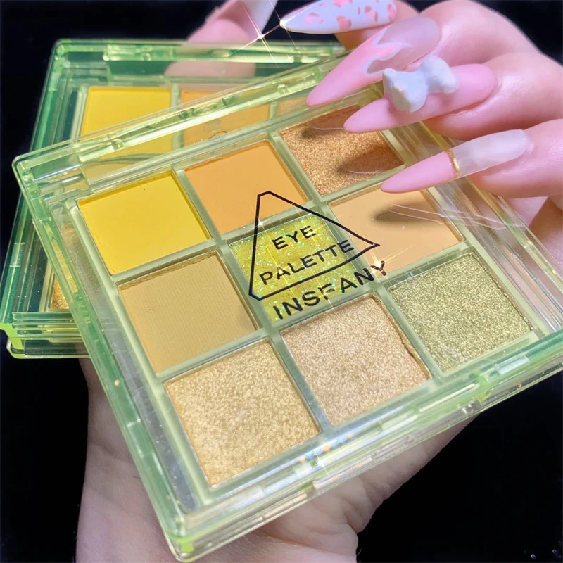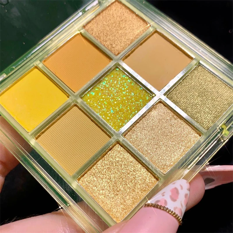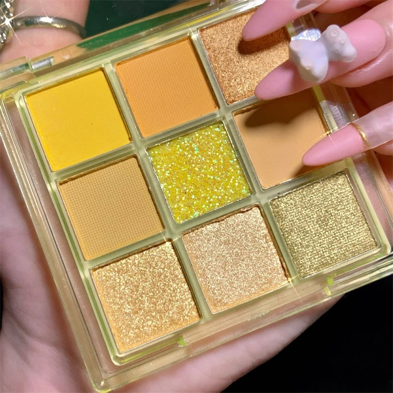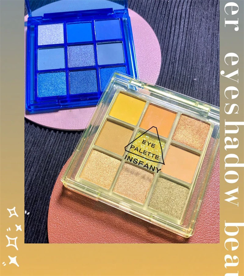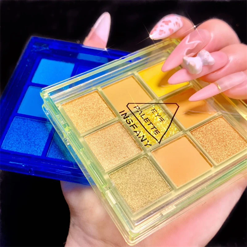 Blue Yellow 9 Colors Makeup Eyeshadow Pallete Blue Eyeshadow Palette Shimmer Glitter Matte Eye Shadow Shades Neon Pigments