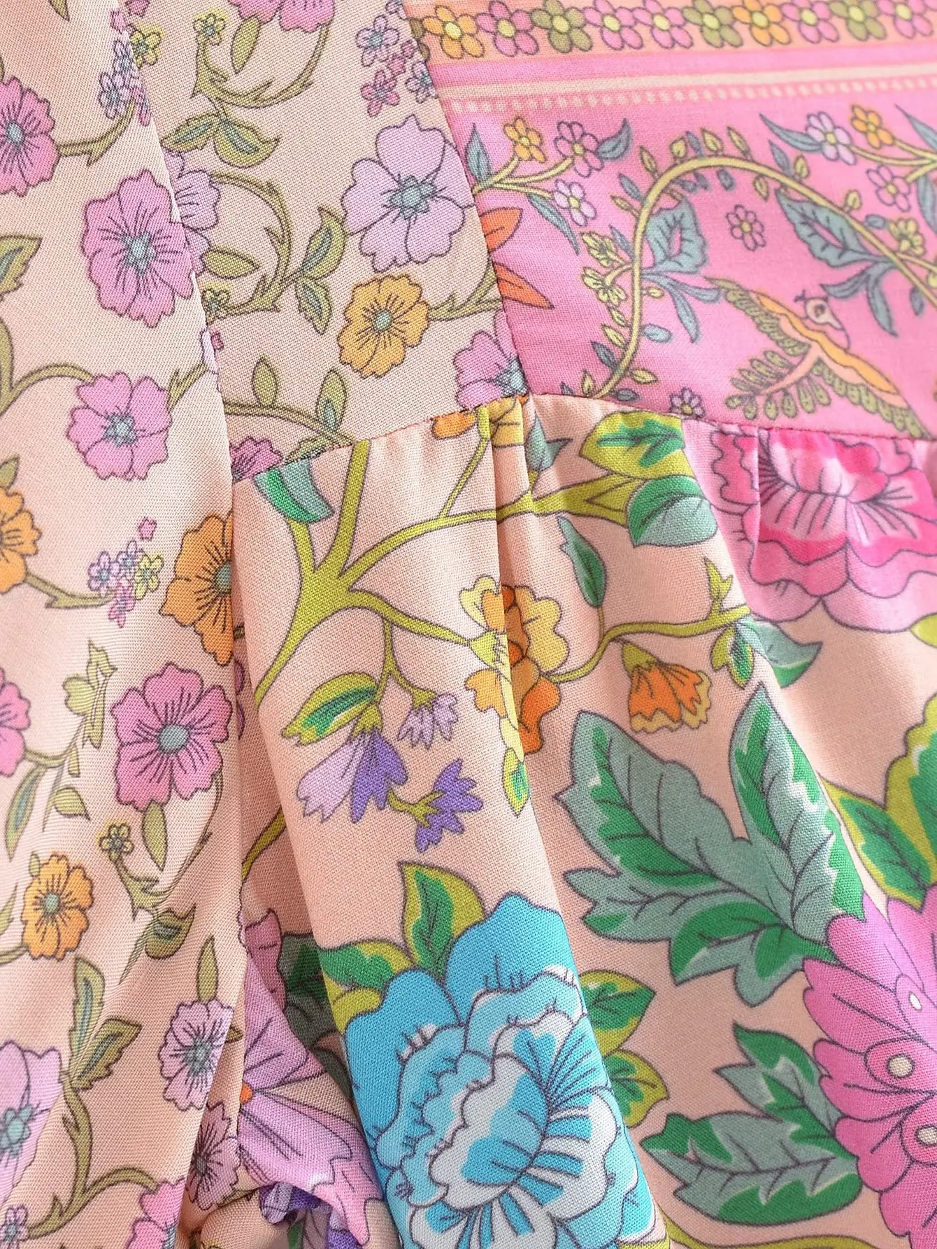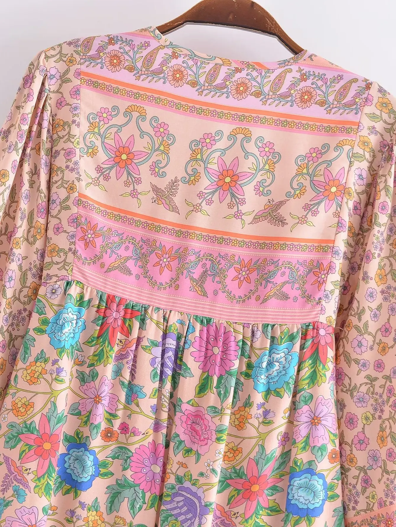 Boho Inspired pink floral print long sleeve blouse women bohemian style boho women tops blouse shirt tops holiday