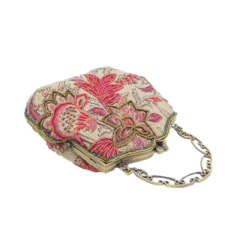 Boutique De FGG Chinese Style Embroidery Floral Women Beaded Evening Purse Bridal Flower Clutch Bag Wedding Party Frame Handbag