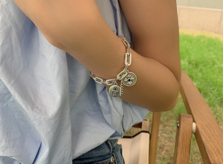 Bracelet for Women silver 925 sterling Korean Fashion Letter Flower Women Silver Charm Chain Bracelet Jewelry Accessories