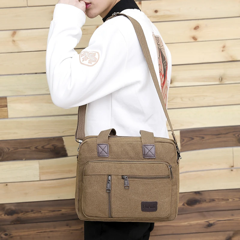 Canvas Men's Handbag Shoulder Bag Travel Large Capacity Multi-layer Crossbody Bag Student Travel Top-handle Bag Leisure Tote