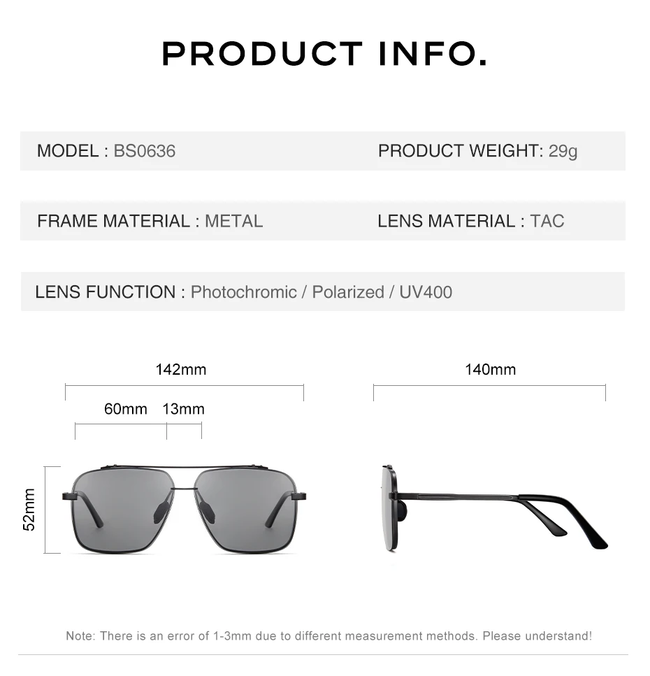 CAPONI Photochromic Sunglasses For Men UV400 Protection Anti Reflective Polarized Sun Glasses Classic Square Glasses Male BS0636
