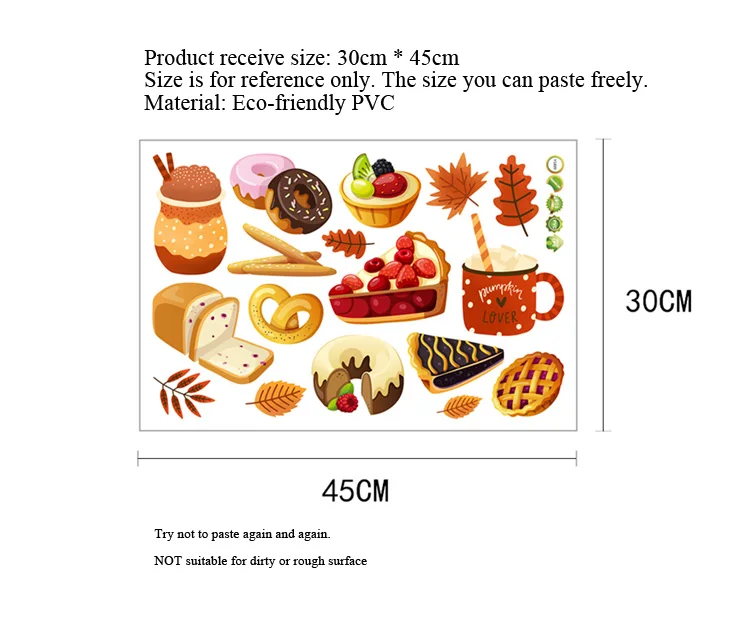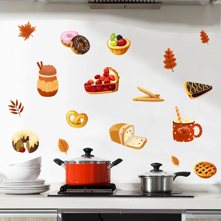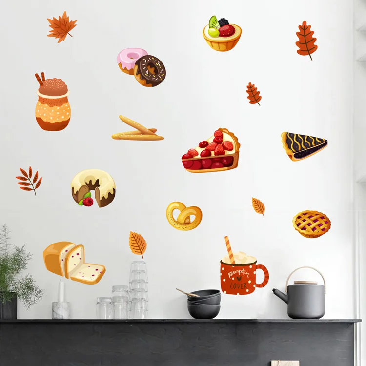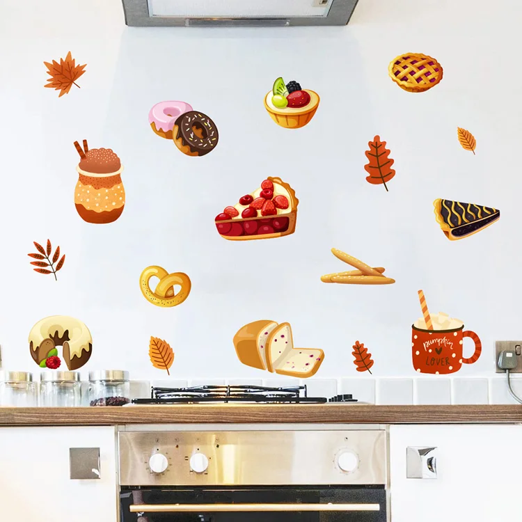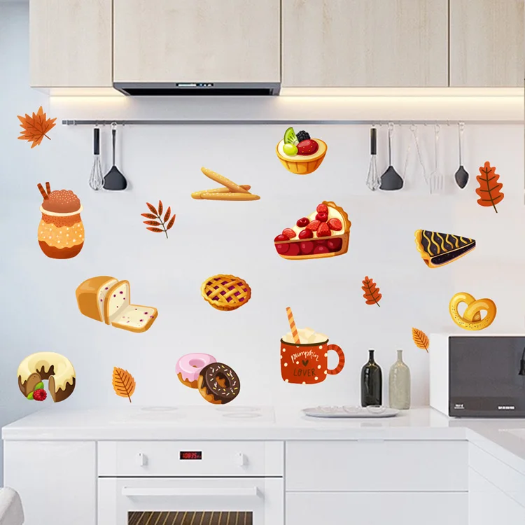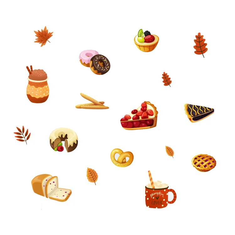 Cartoon bread dessert pattern Wall sticker Kitchen dining living room home decoration background wallpaper for kids stickers