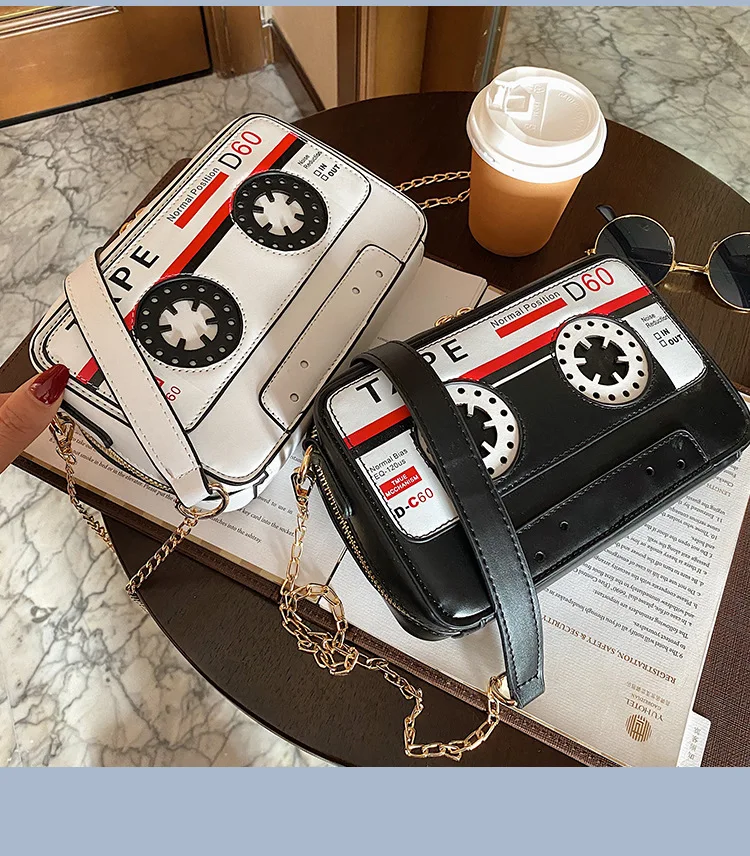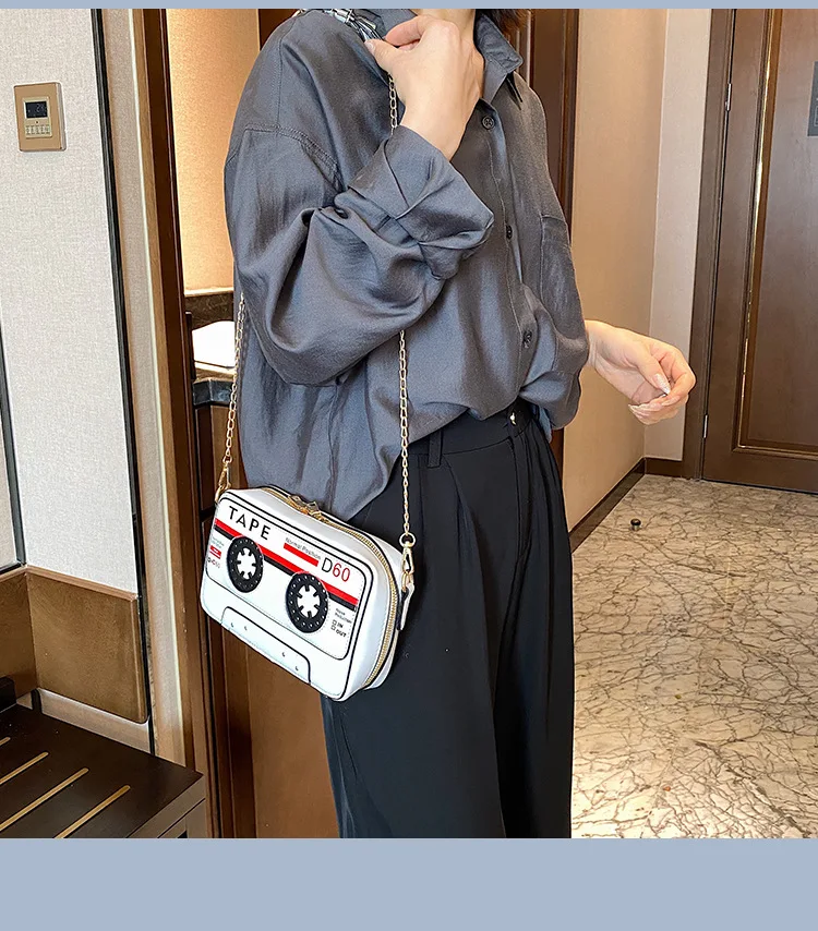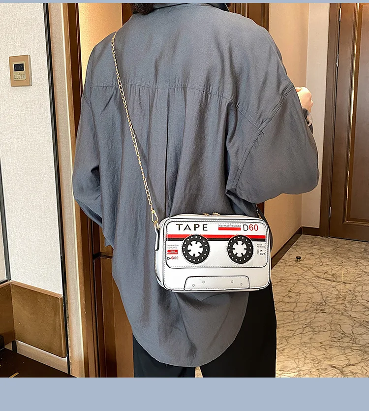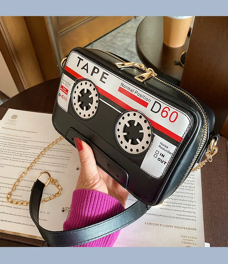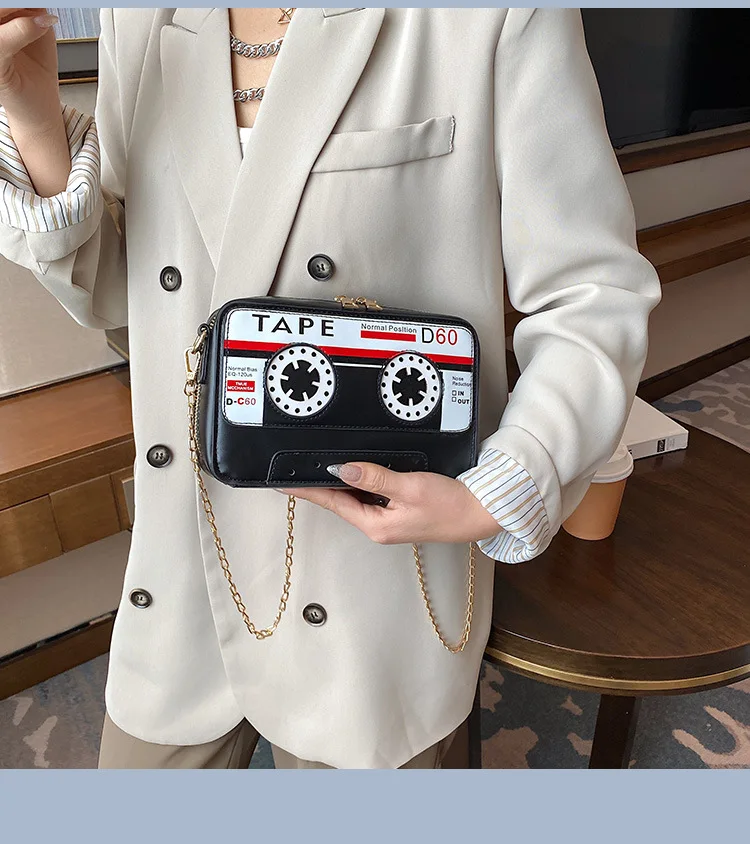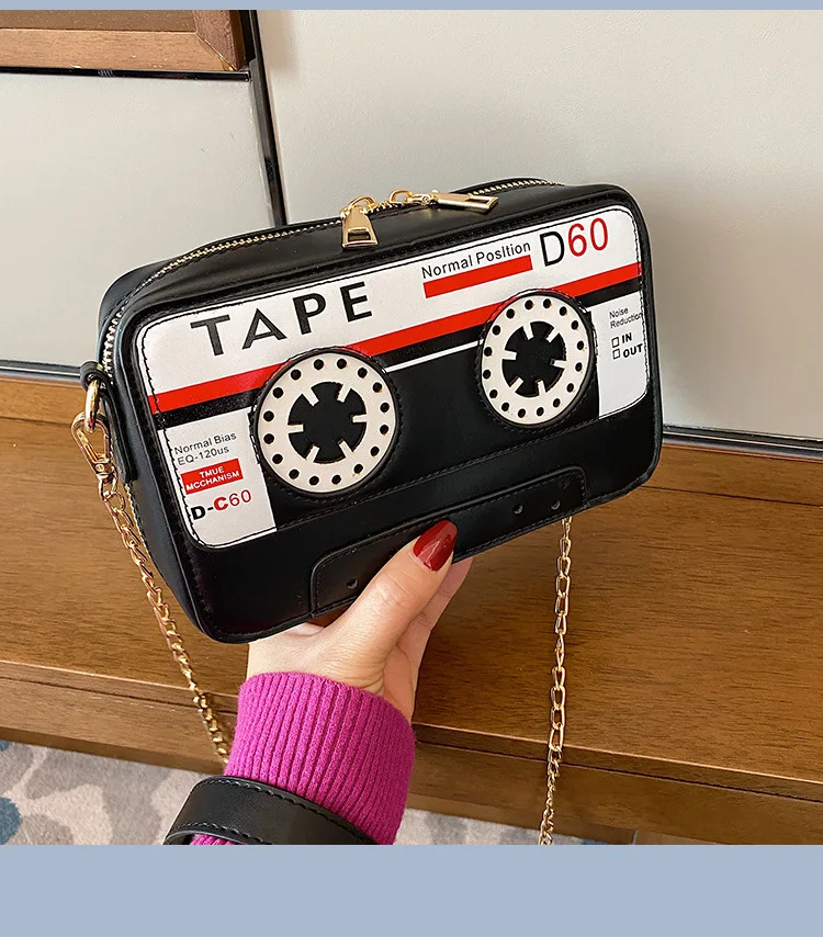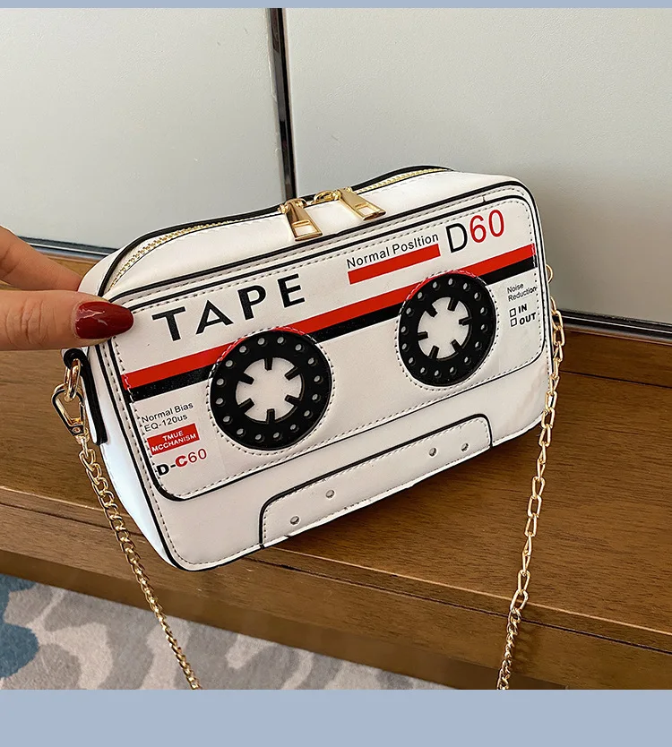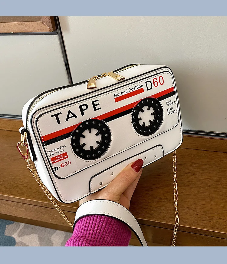 Cartoon Tape Shape Small Crossbody Bag Women Purses and Handbags Fashion Shoulder Chain Bag Girls Clutch Bag Pu Leather