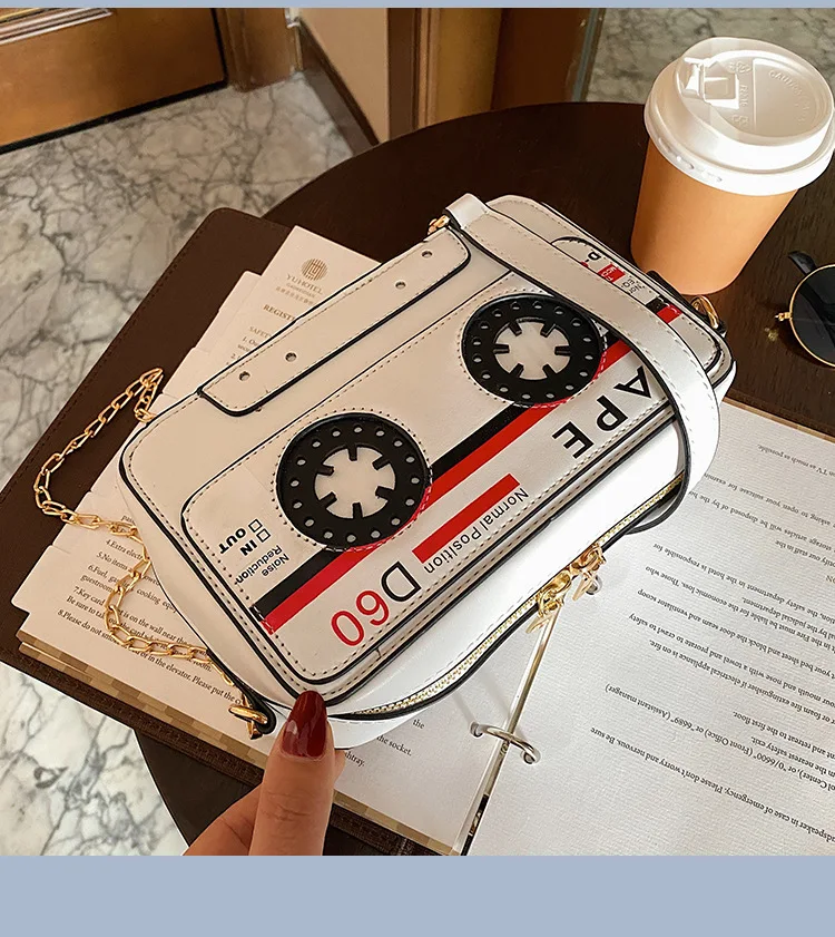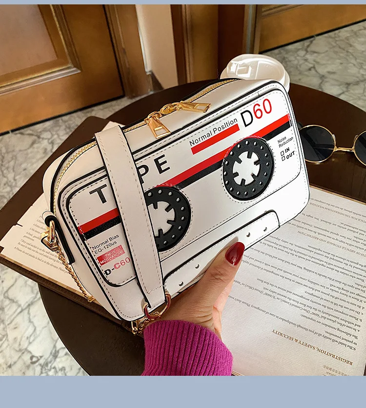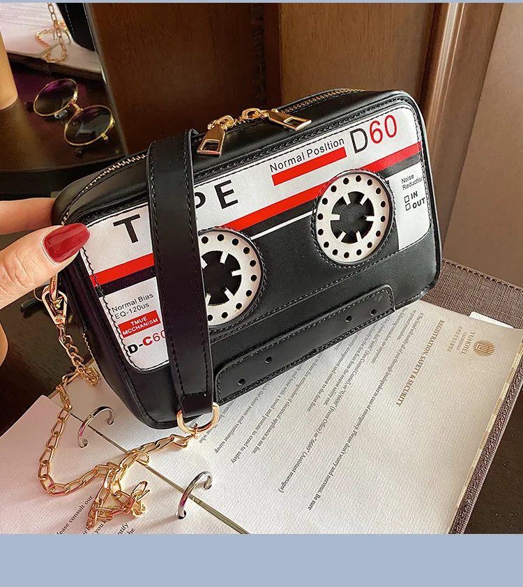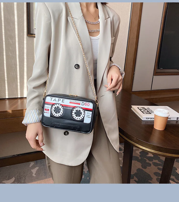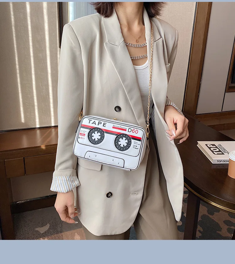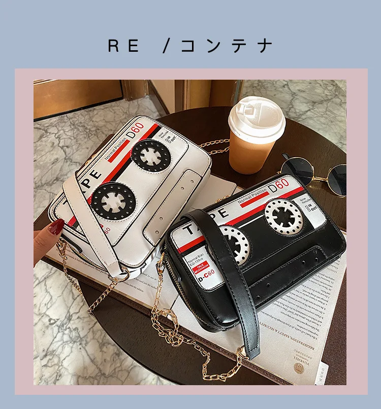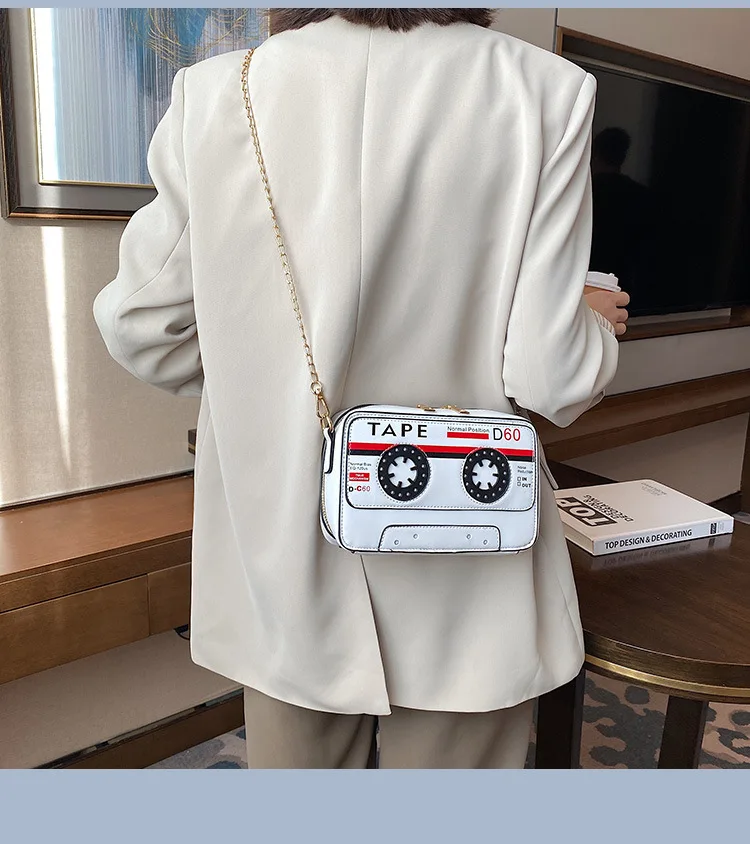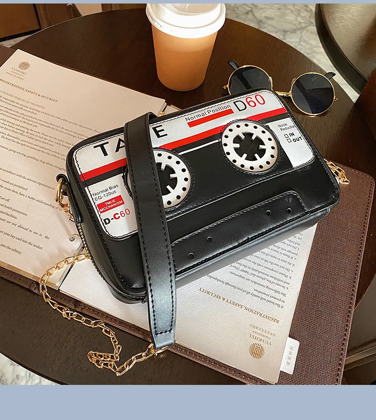 Cartoon Tape Shape Small Crossbody Bag Women Purses and Handbags Fashion Shoulder Chain Bag Girls Clutch Bag Pu Leather
