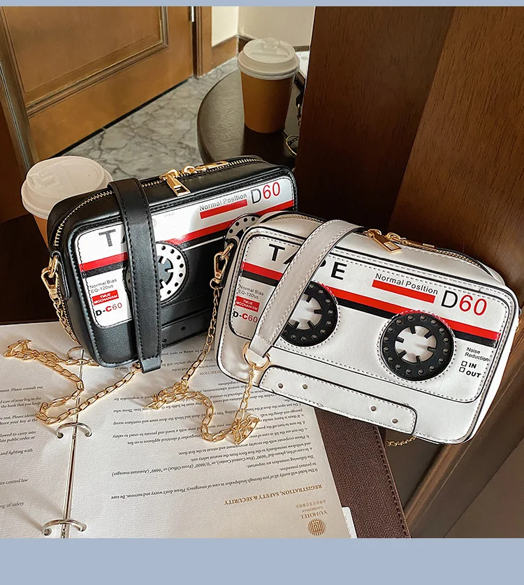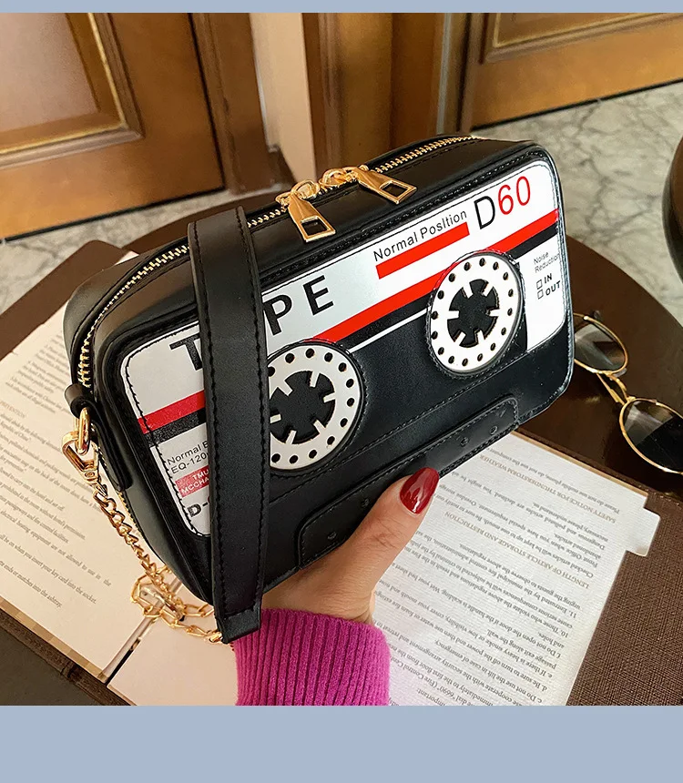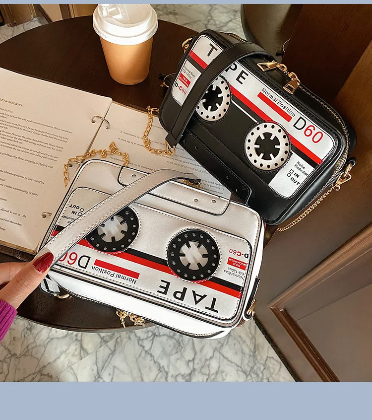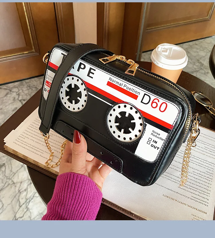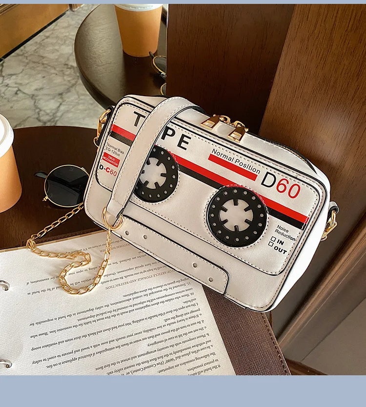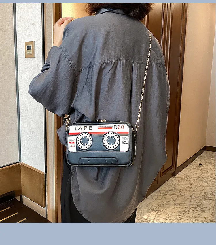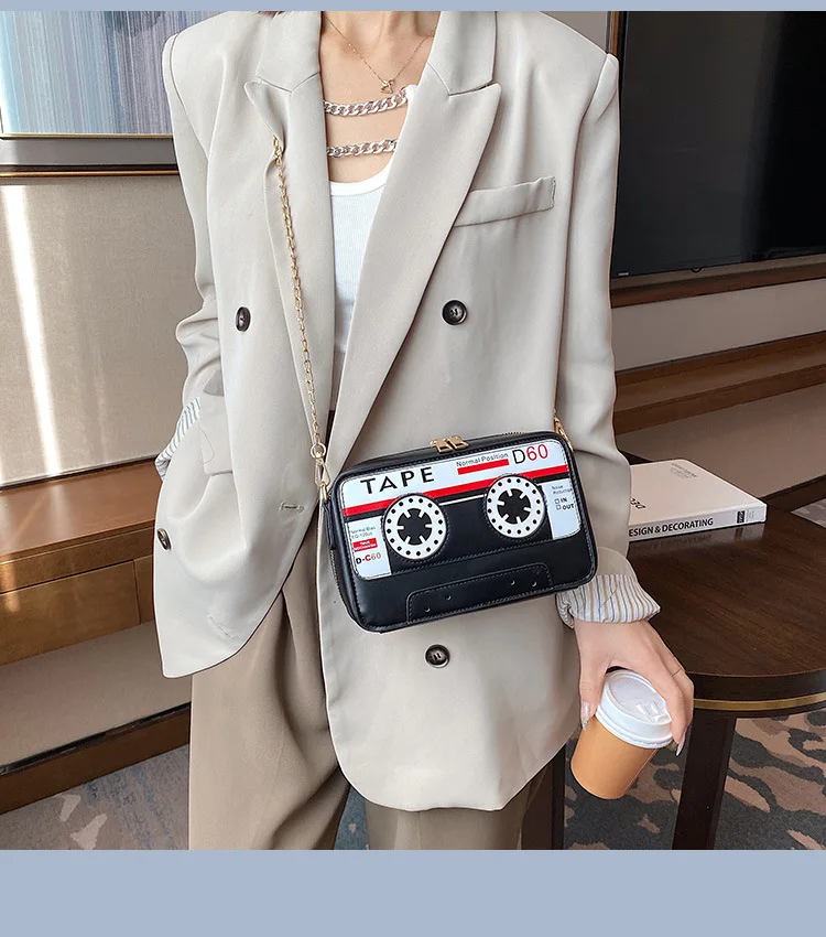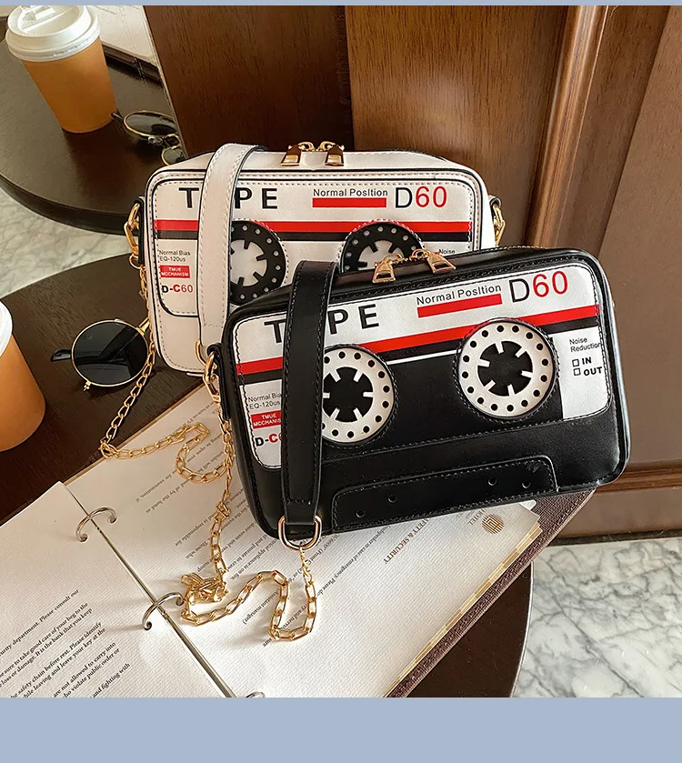 Cartoon Tape Shape Small Crossbody Bag Women Purses and Handbags Fashion Shoulder Chain Bag Girls Clutch Bag Pu Leather