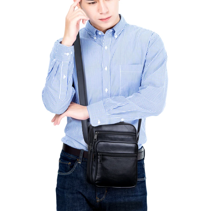 Casual Men's Business Genuine Leather Mini Crossbody Bag Sheepskin Small Men Single Shoulder Messenger Bags High Quality Bolsa