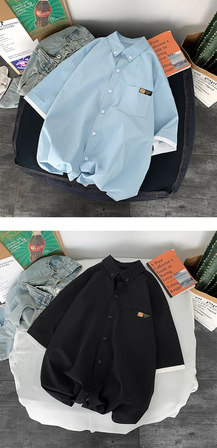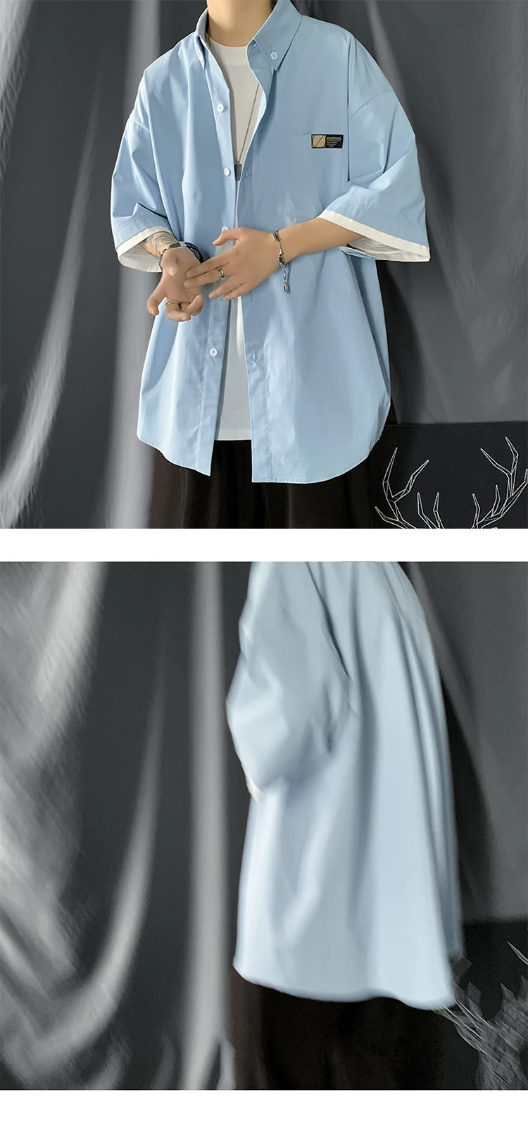 Casual Shirts Men Patchwork Fake-two Pieces Plus Size 3XL Harajuku Korean Fashion Loose Straight Baggy Handsome High Street Chic