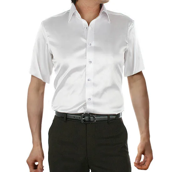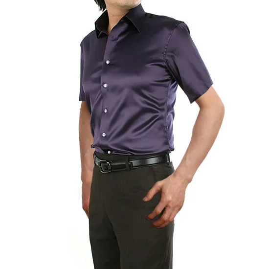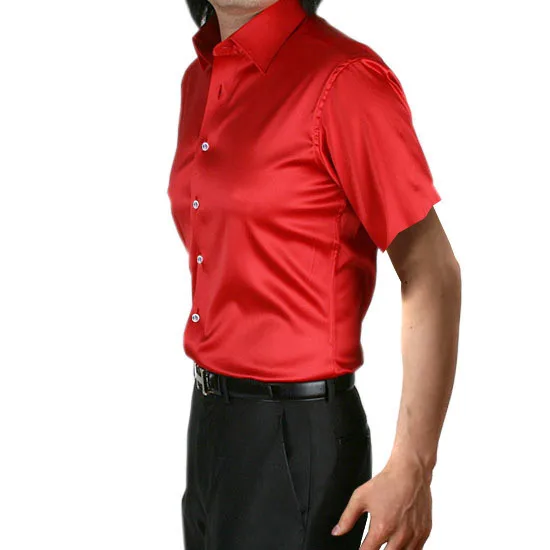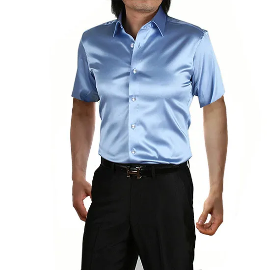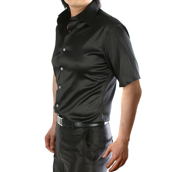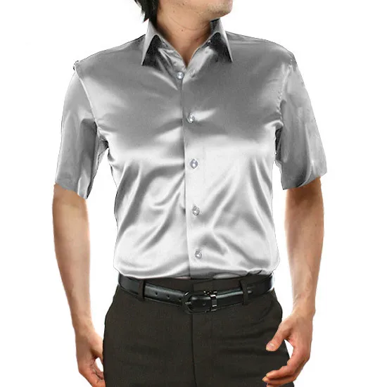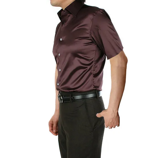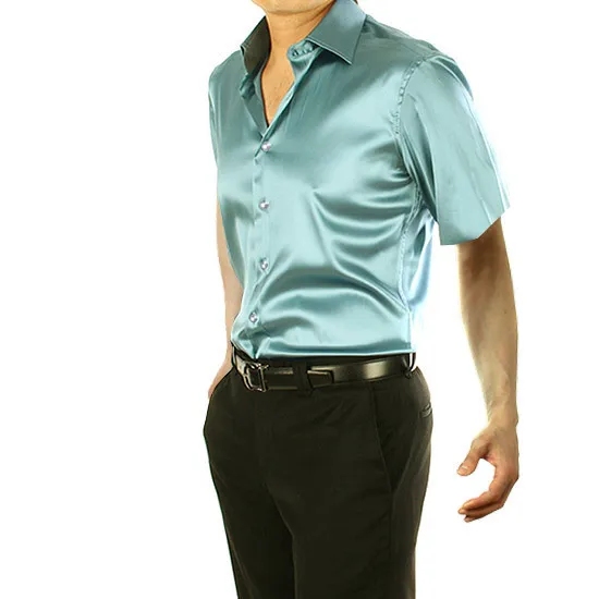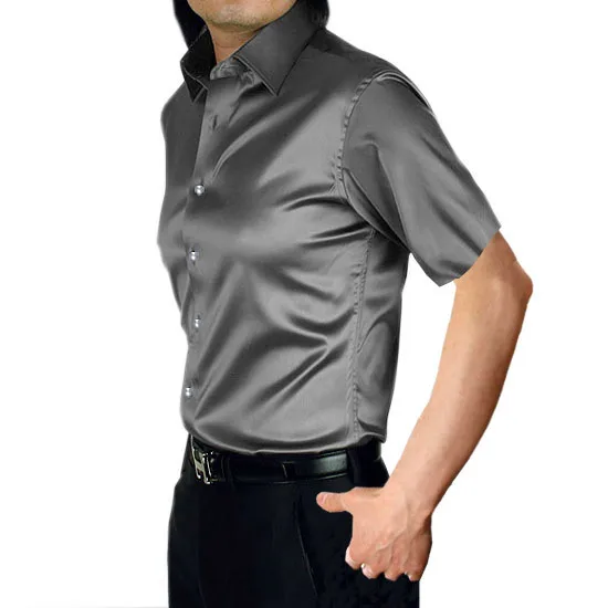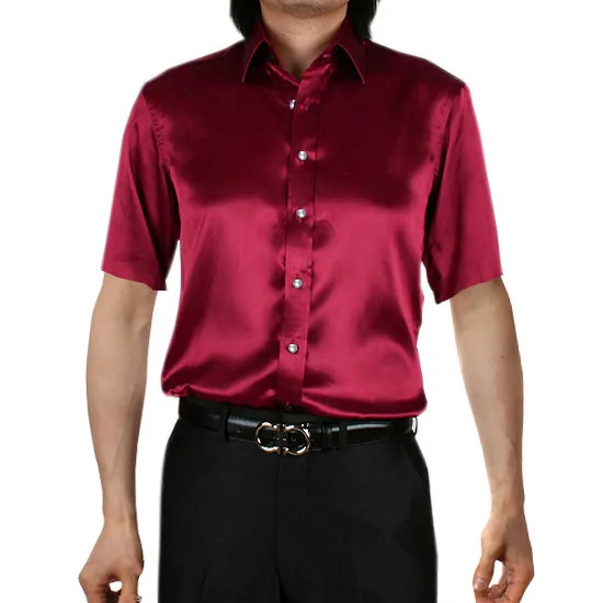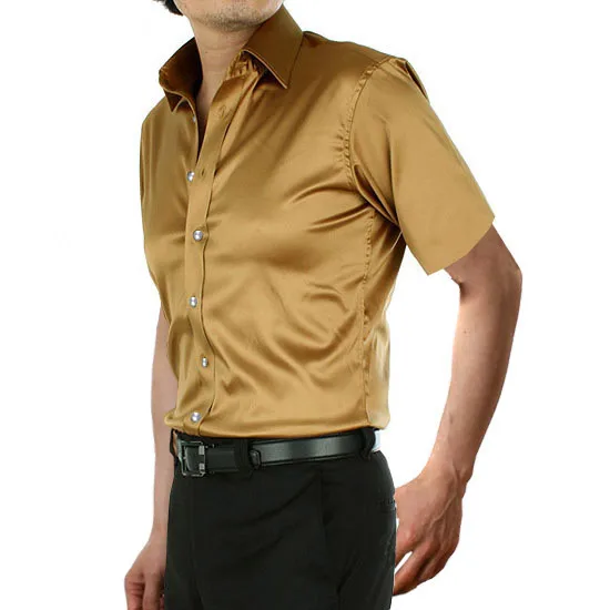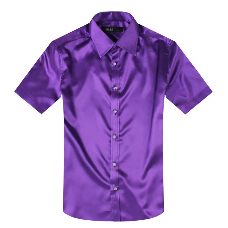 Chemise Homme Casual Short Sleeved Slim Fit Chinese Style Satin Shirt for Men
