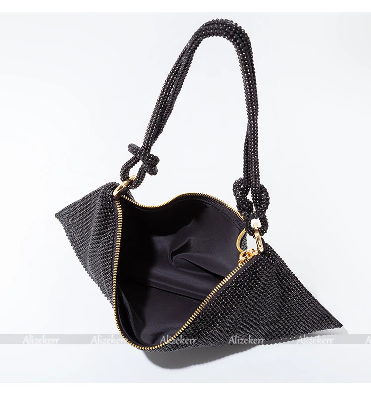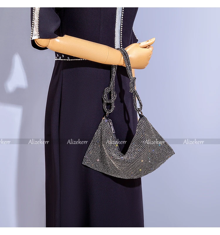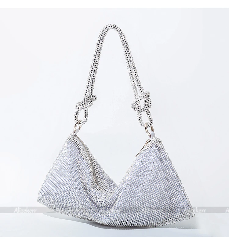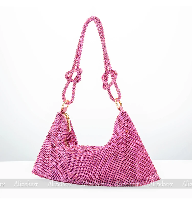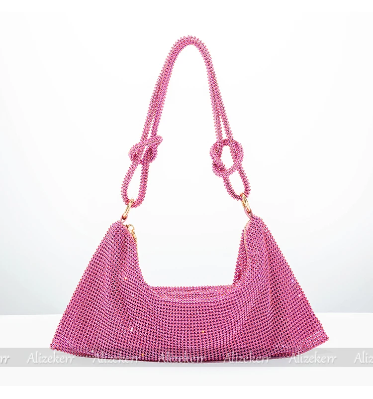 Chic Rhinestones Evening Clutch Purses Wedding Party New Luxury Designer Wine Red Knot Crystal Handle Shoulder Bags High Quality