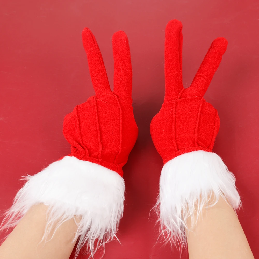 Christmas Costume Red Gloves Short Velvet Nylon Hostess Mittens with White Furry Cuff Holiday Festive Decorations Accessories