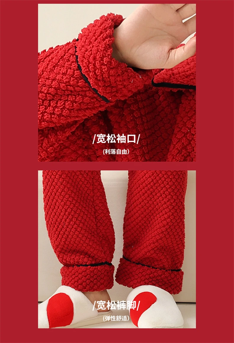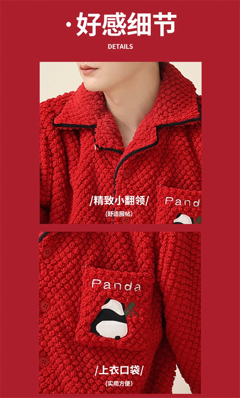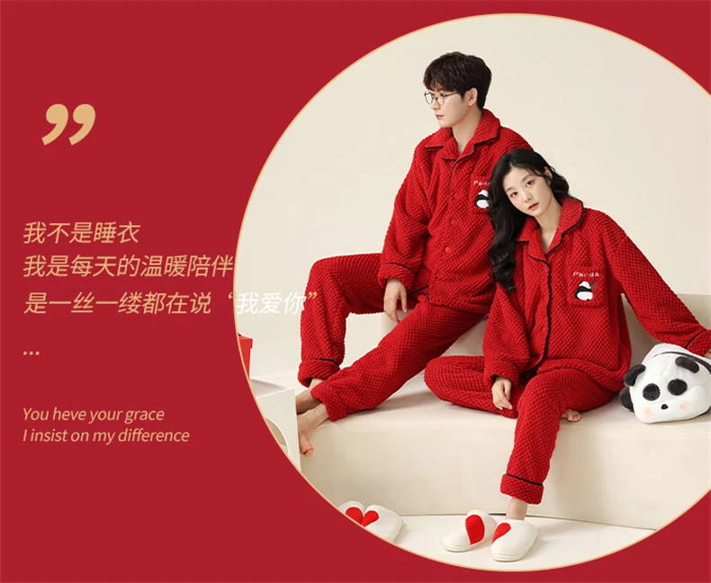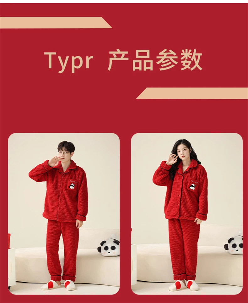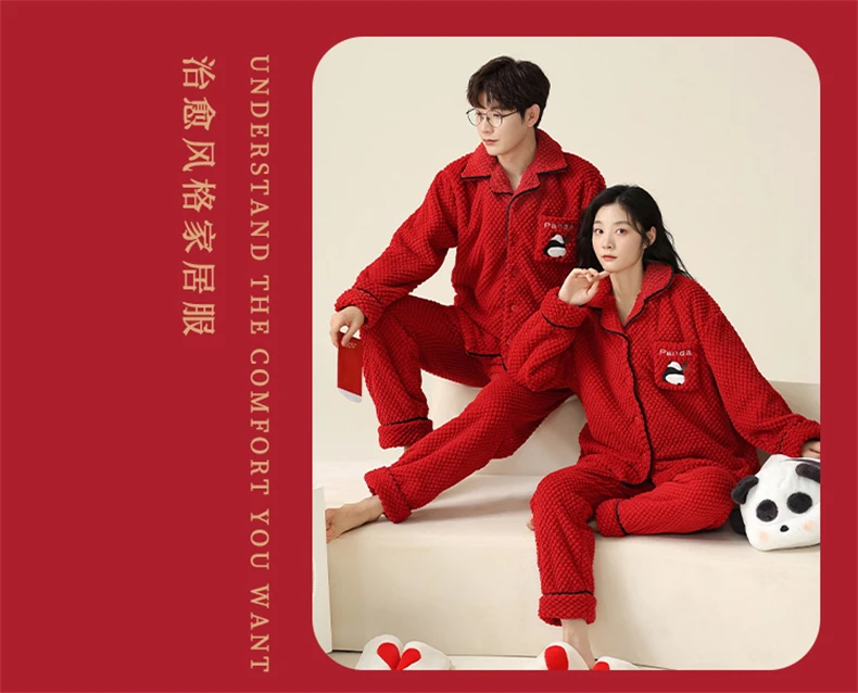 Christmas Couples Pajamas Lucky Big Red Cardigan Buttons Men Women Winter Wedding Flannel Sleepwear Cute Panda Women's Nightwear
