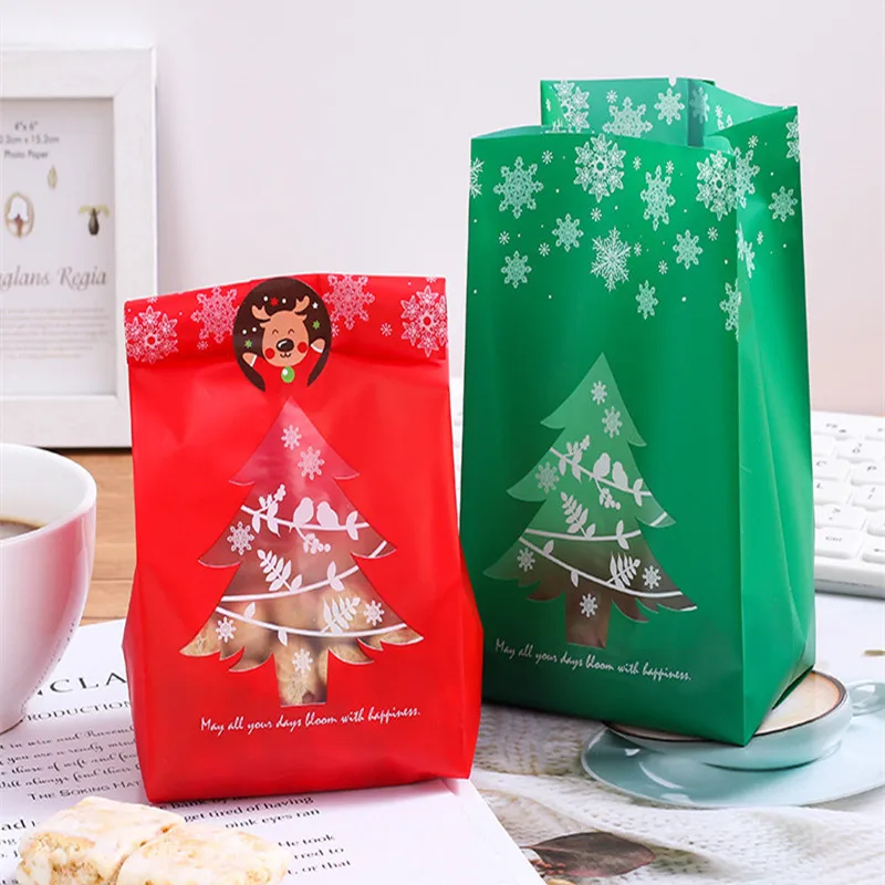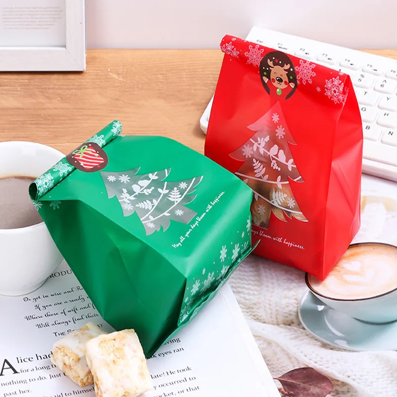 Christmas Gift Bags 25pcs Snowflake Christmas Baking Packaging Bag Candy Boxes Sticker Xmas Decorations for Home 2022 Navidad