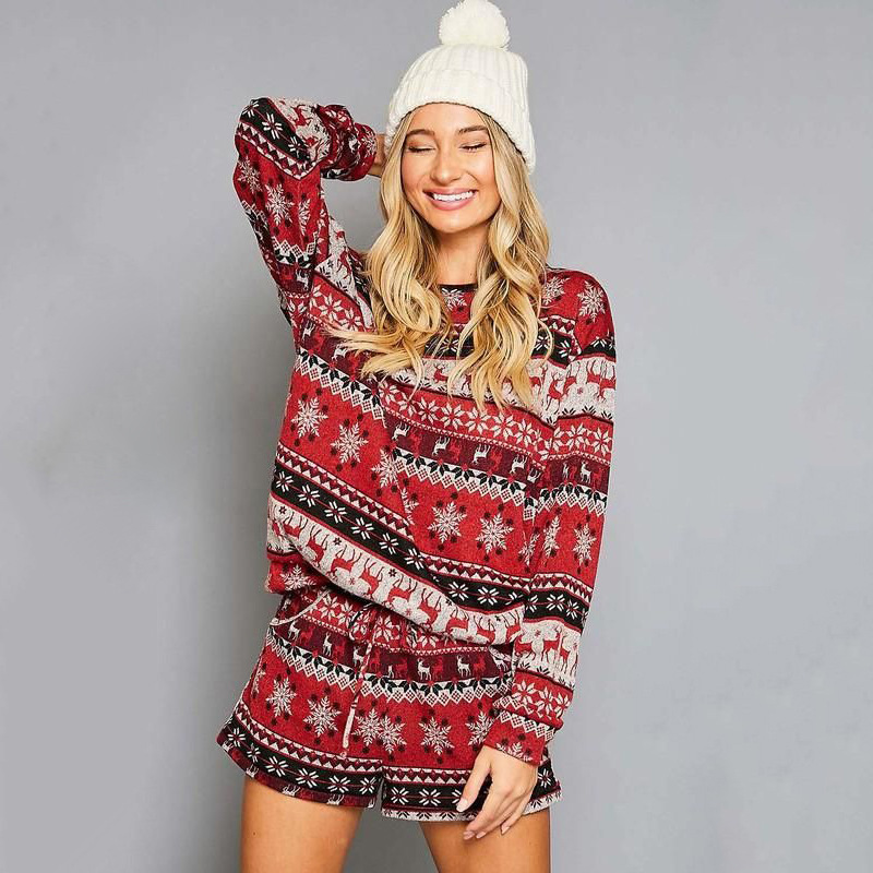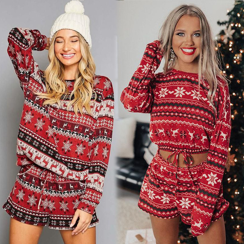 Christmas Home Sets Women's Printed Long-sleeved Loose Loungewear Christmas Gifts Casual and Comfortable Pajama Two-piece Set