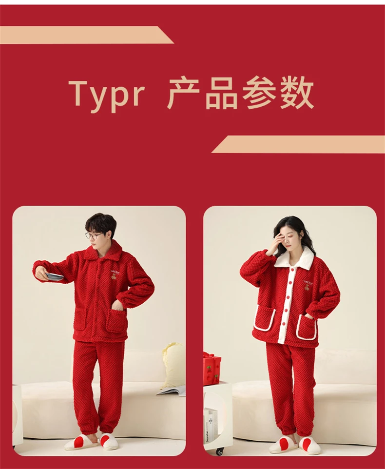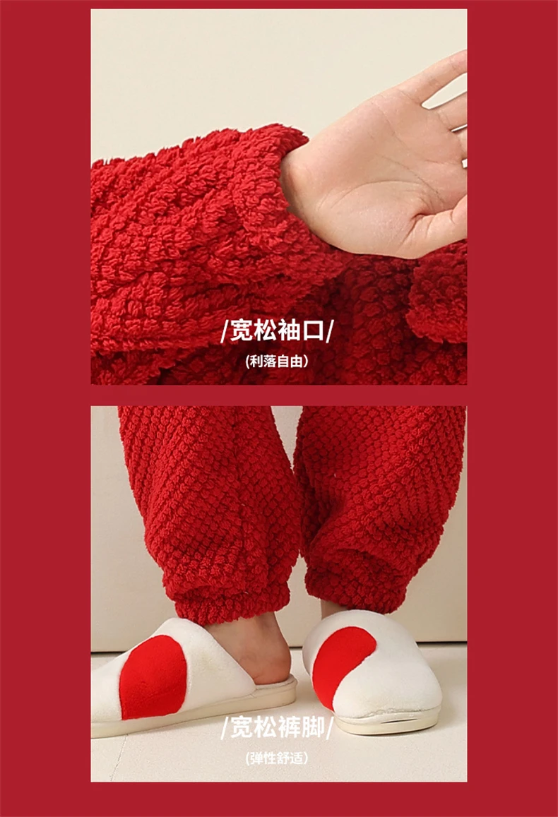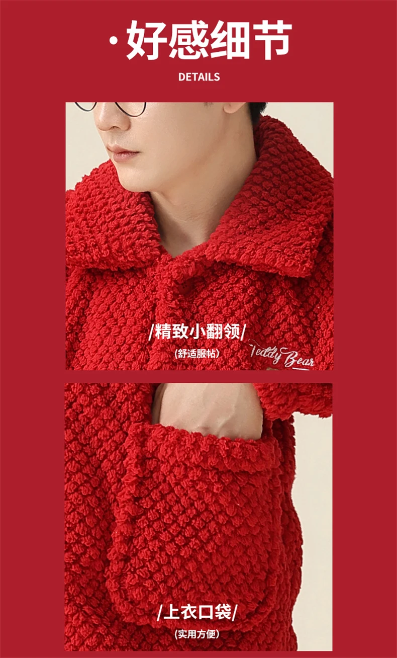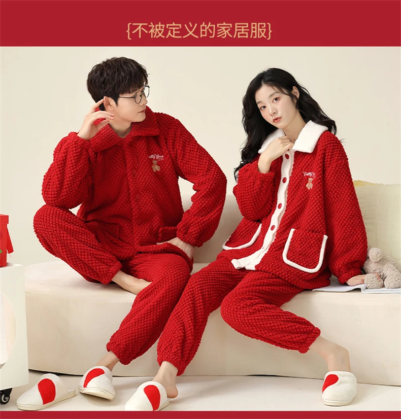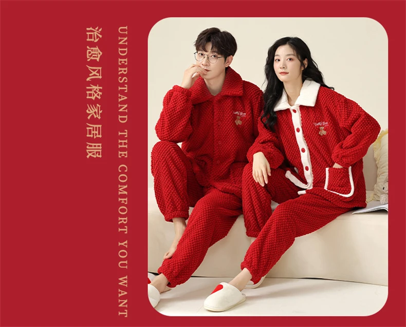 Christmas Pajamas For Couple Flannel Winter Warm Men Women Big Red Cardigan Homewear Cute Bears Sleepwear Couple New Year Pijama