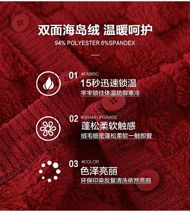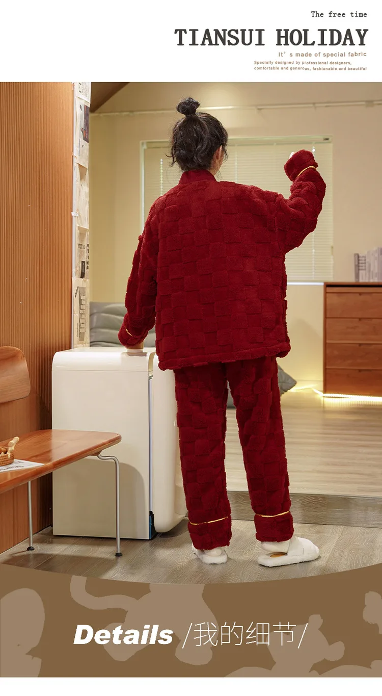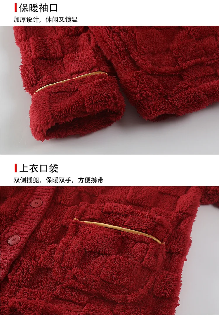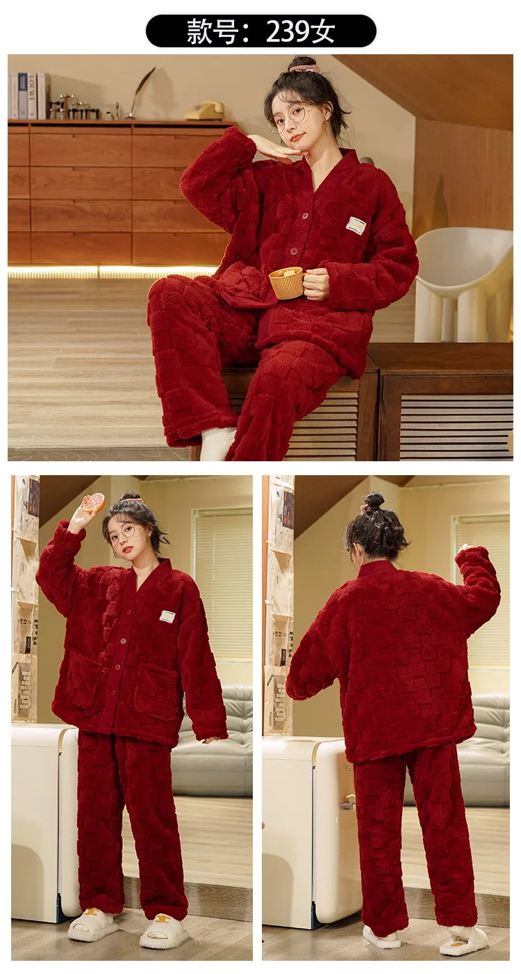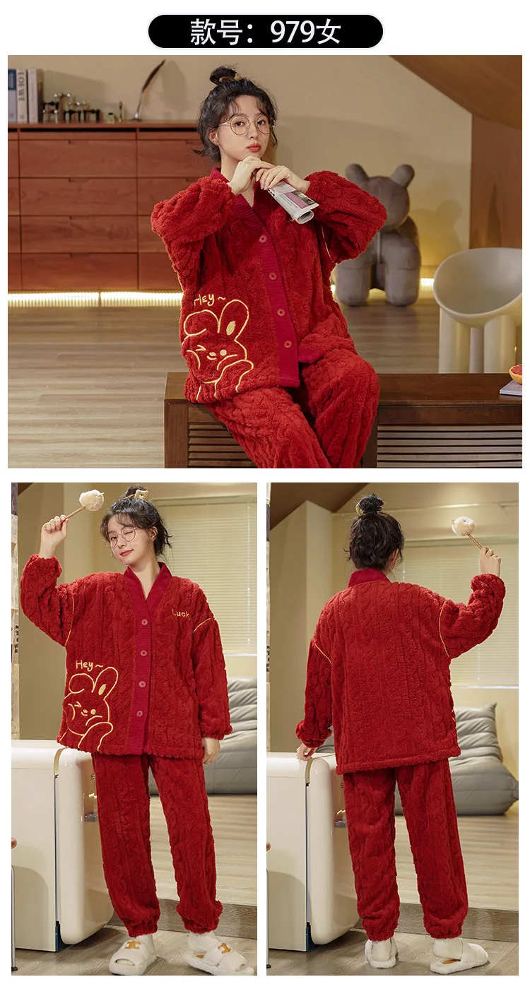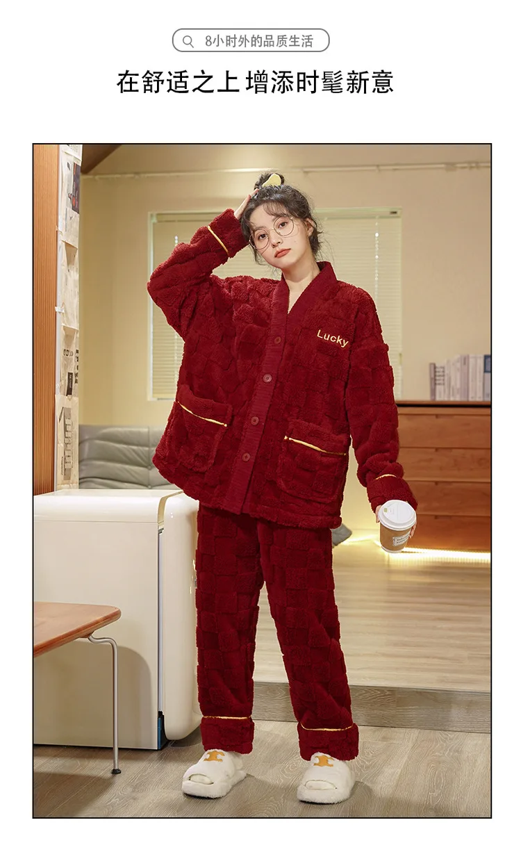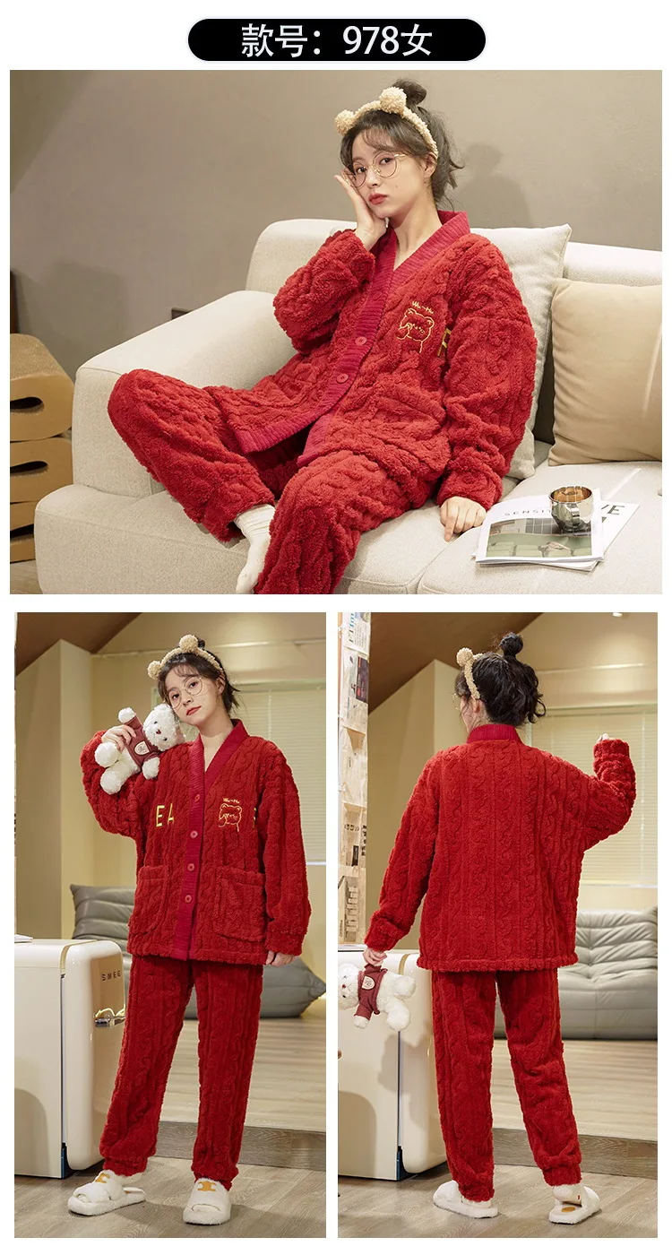 Christmas Pajamas Lucky Big Red Cardigan Buttons Women Winter Long Sleeve Flannel Sleepwear Sexy Women Homewear