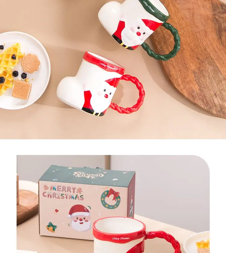 Christmas Sock Shaped Mugs Santa Claus Ceramic Water Coffee Cup Creative Drinkware Christmas GiftHot Drinks Such Milk Tea