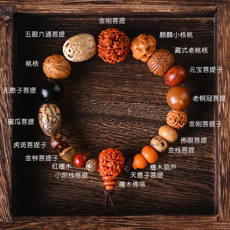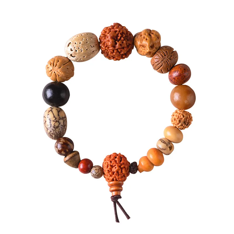 Classic 18 Type Rudraksha Beads Mix Men Bracelet Elasticity Big Beads Wooden Bracelets Mens Buddhism Biker Prayer Jewelry