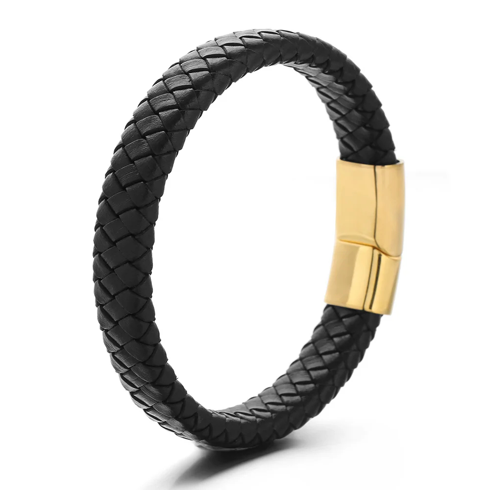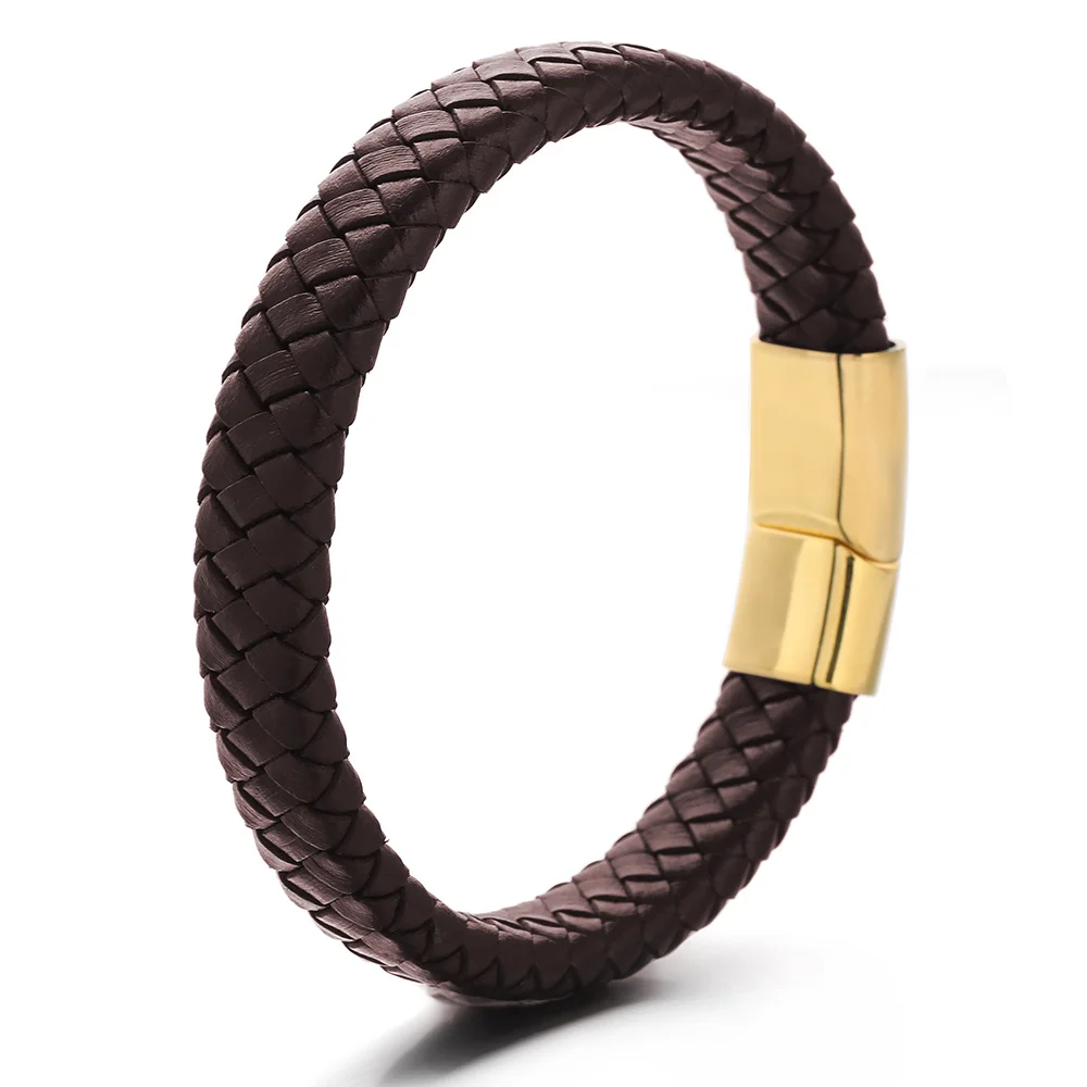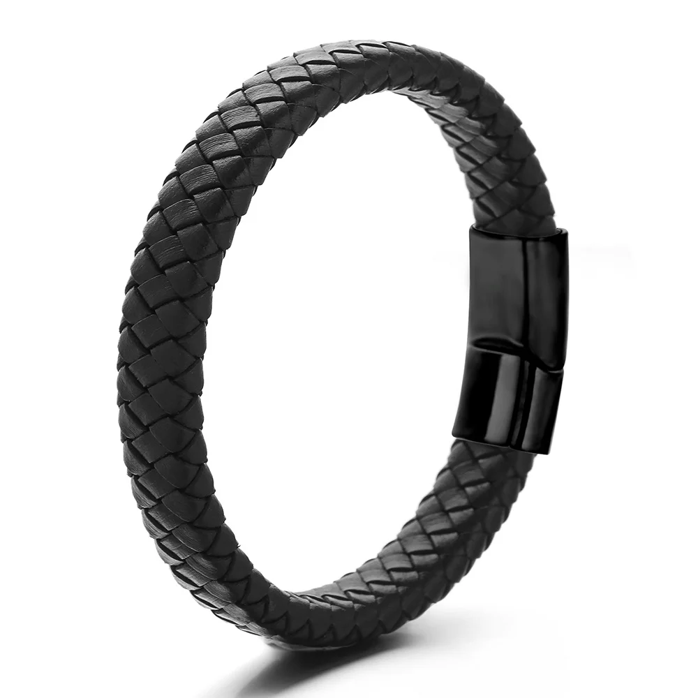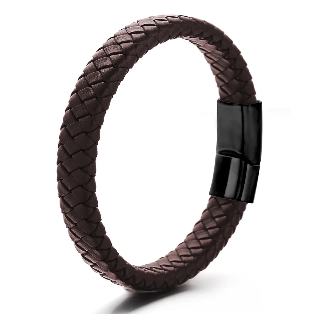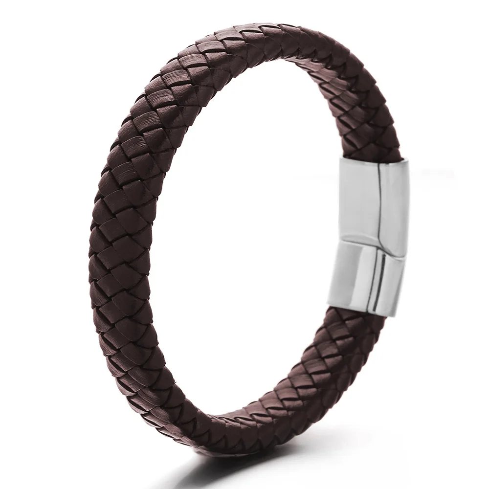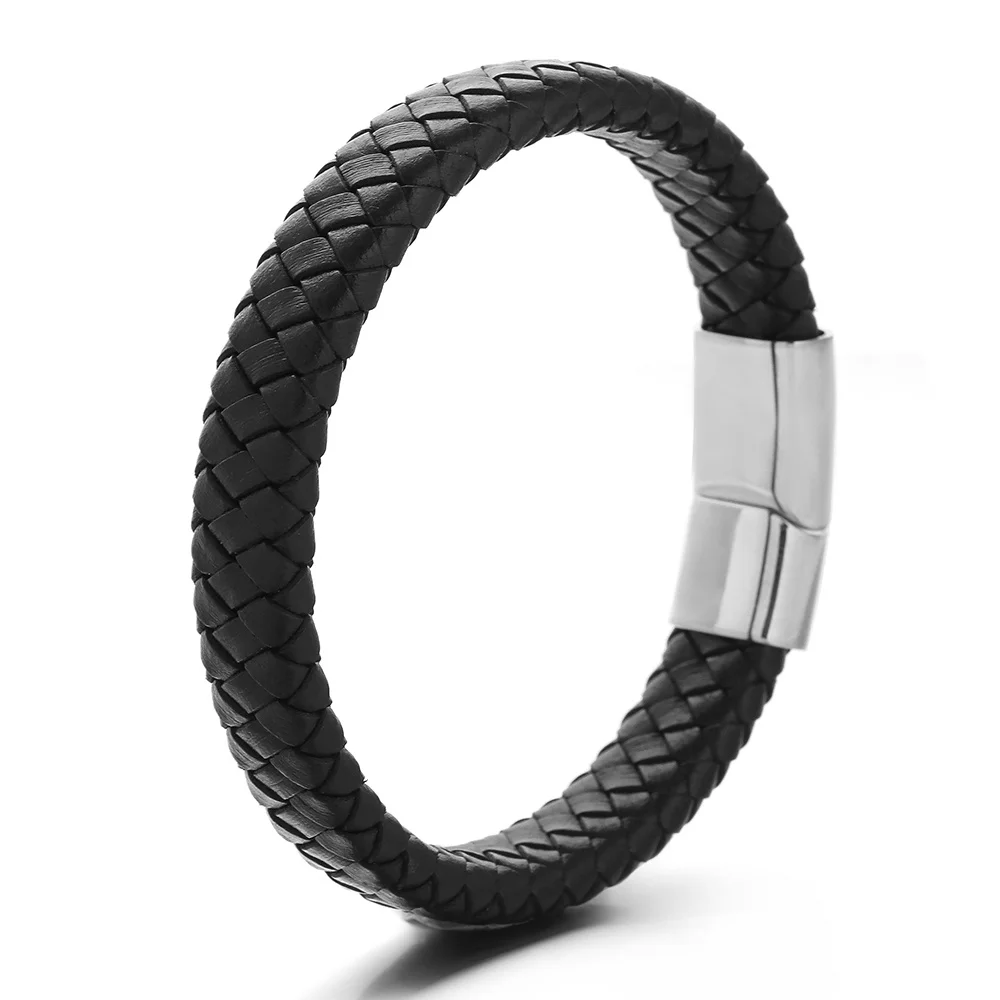 Classic Leather Bracelet For Men Stainless Steel Clasp Genuine Rope Woven Leather Men Bracelet Jewelry Accessories
