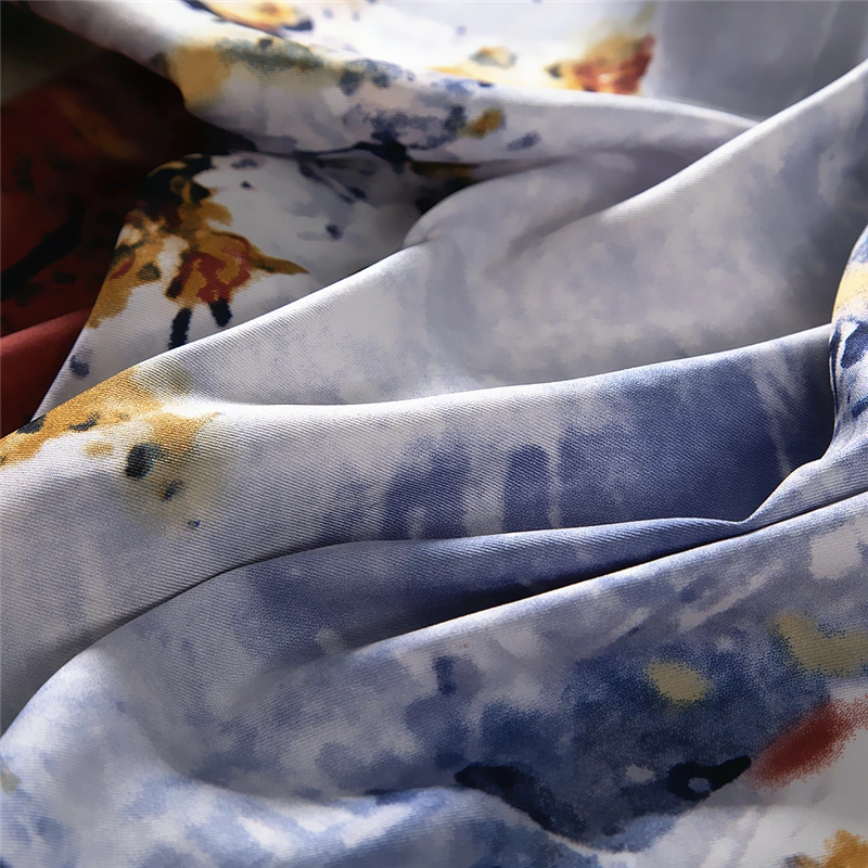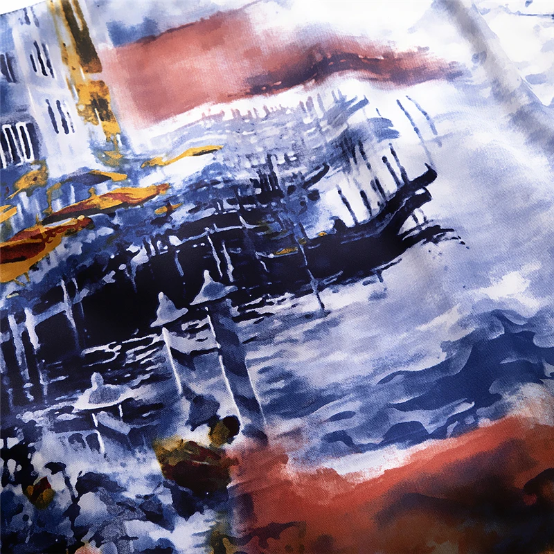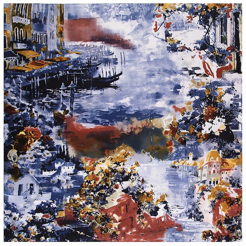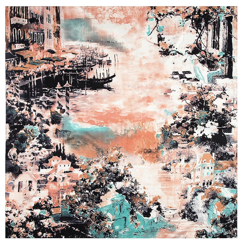 Classic New Oil Painting House Water Village Ship Ladies BrandTwill Silk Square Scarf Women Kerchief Scarves For Ladies Shawl