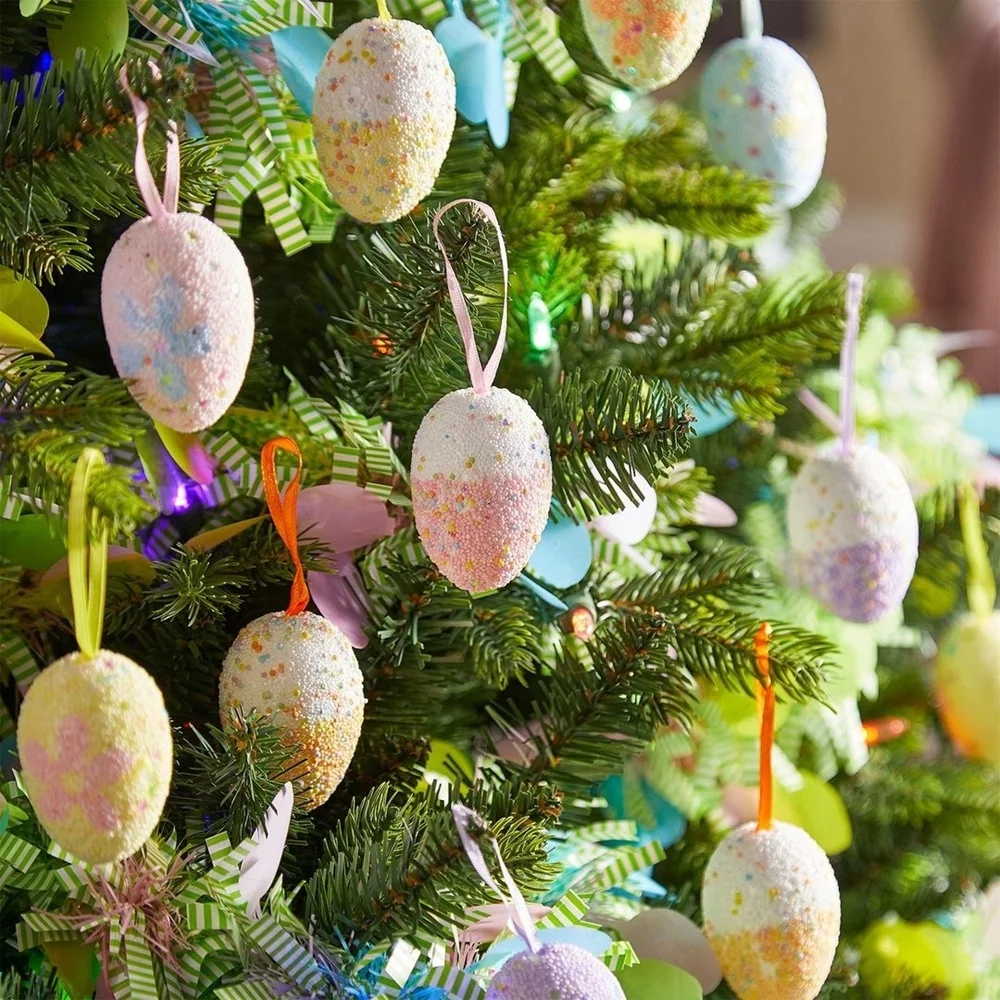 12PCS Colorful Easter Eggs Plastic Hanging Eggs for Happy Easter Spring Party Decorations Easter Tree Haning Kids Gifts Supplies