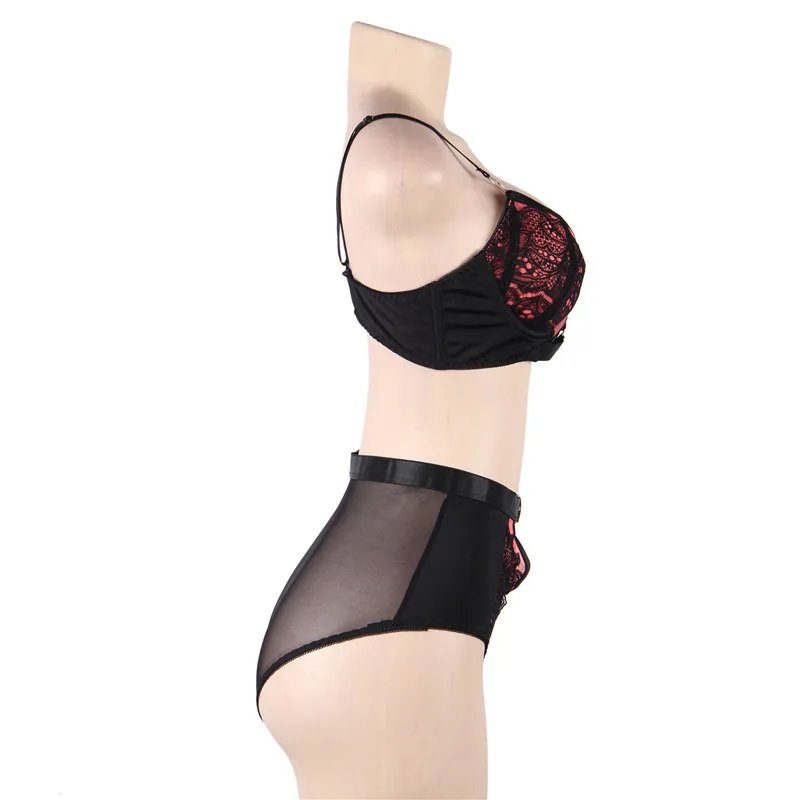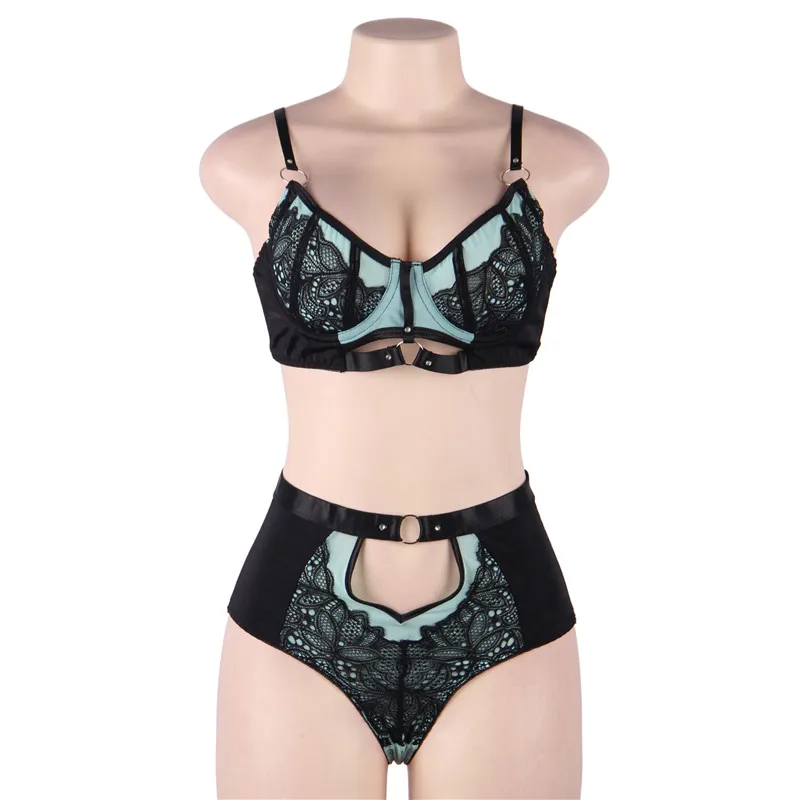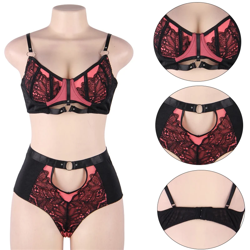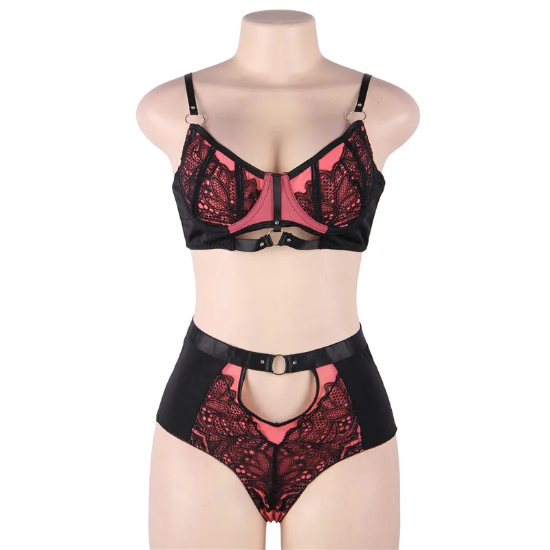 Comeondear Lace Splice Bra Set Plus Size 3XL 5XL Ensemble Lingerie Femme Sexy Lingerie Set Female Nightwear Bra Panties R80886P