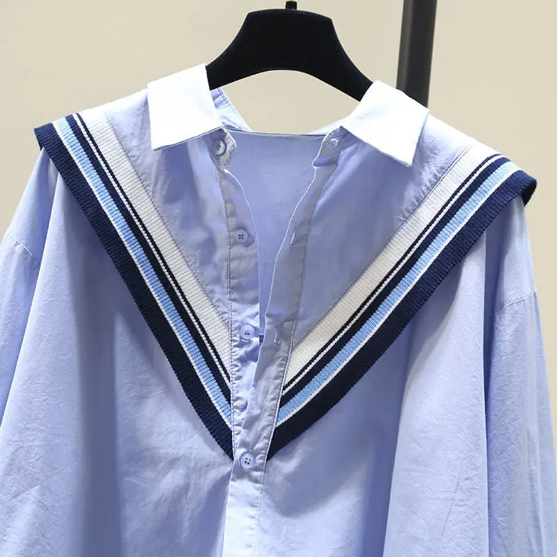 Cotton Long Sleeve Shirts Women's Clothing Loose Casual Blouses Patchwork Knit Striped Blusas Mujer Korean Ruffles Tops