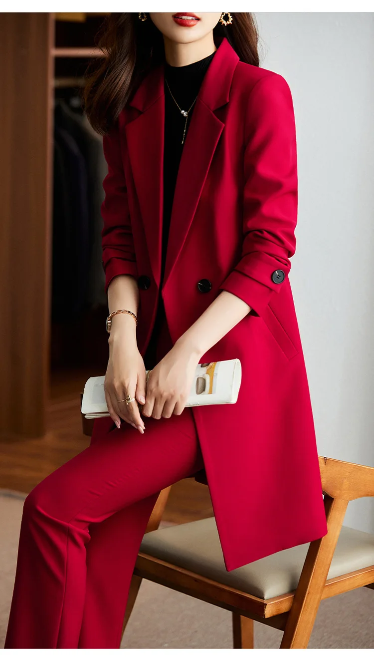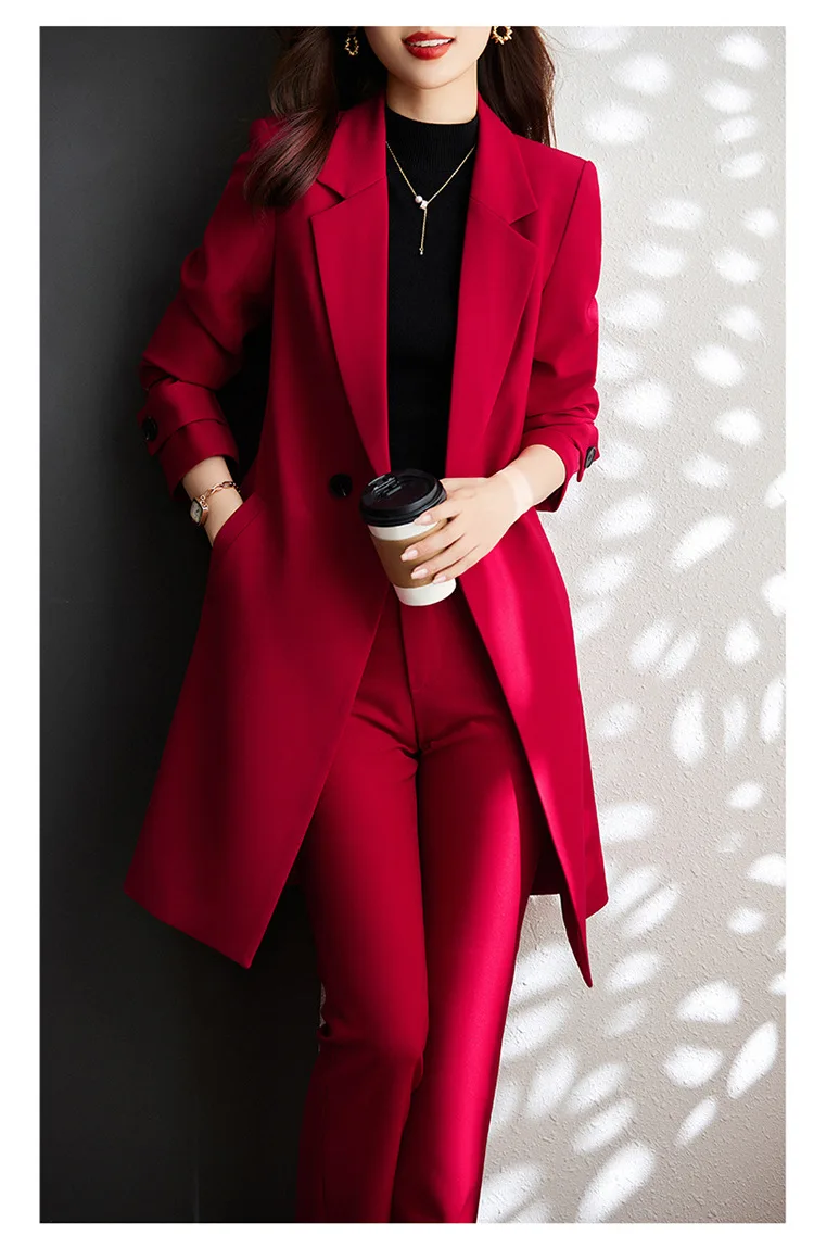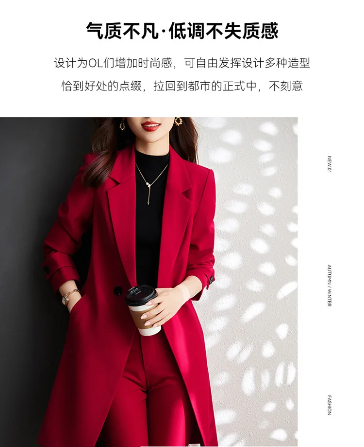 Cotton Padded Thickened Wine Red Trench Coat Women's Mid-Length Winter New Annual Meeting Work Clothes Casual Suit Coat