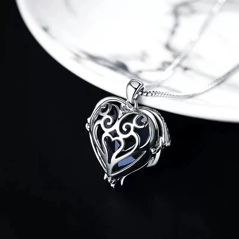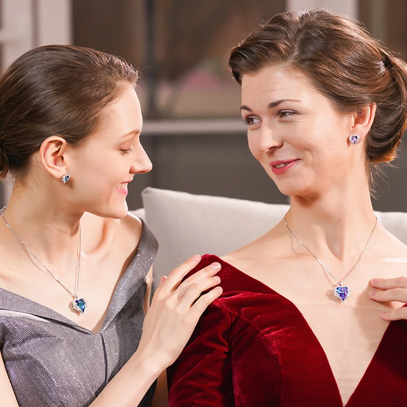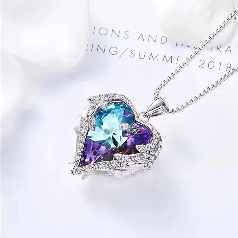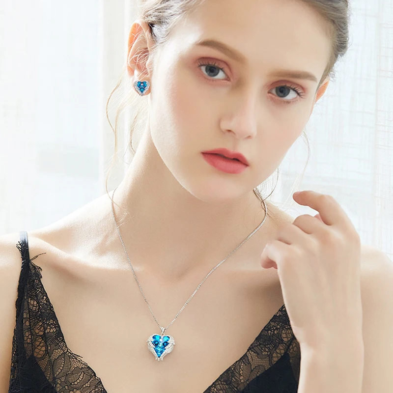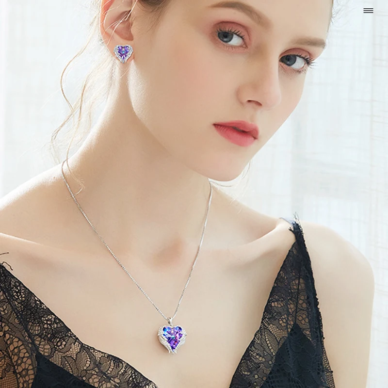 Crystal Angle Wings Heart Shaped Pendent Necklace Stud Earrings Jewelry Set Gift for Women