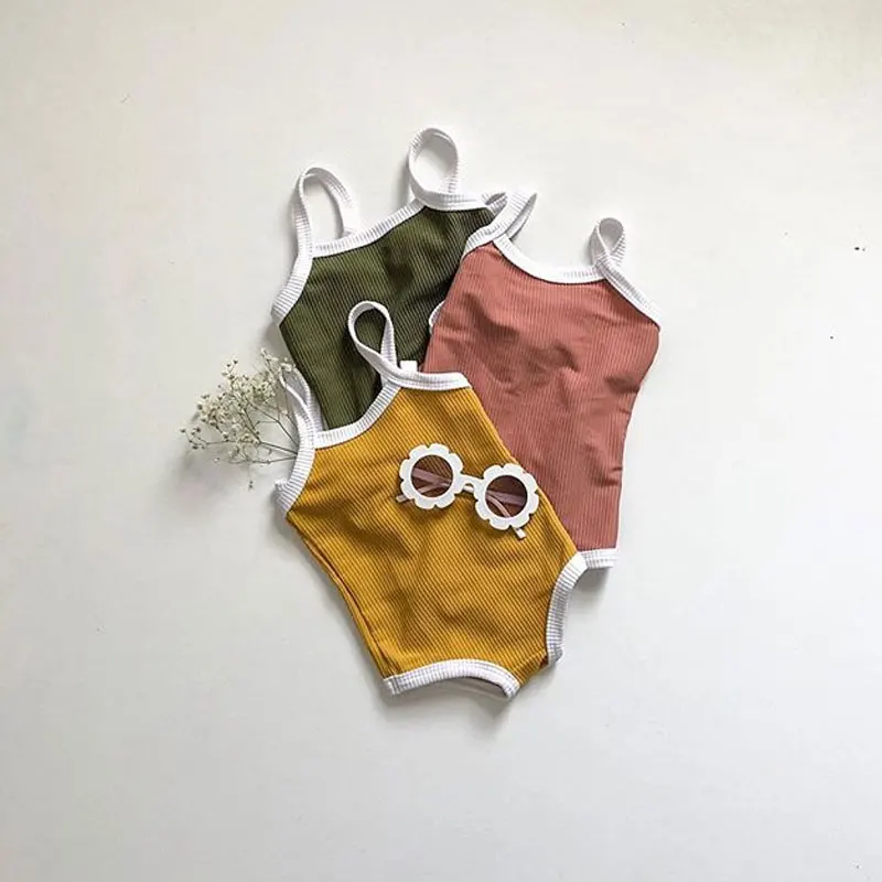 Cute Newborn Children Kids Baby Girls Swimwear Swimsuit One-piece Bikini Toddler Infant Solid Beachwear Suit