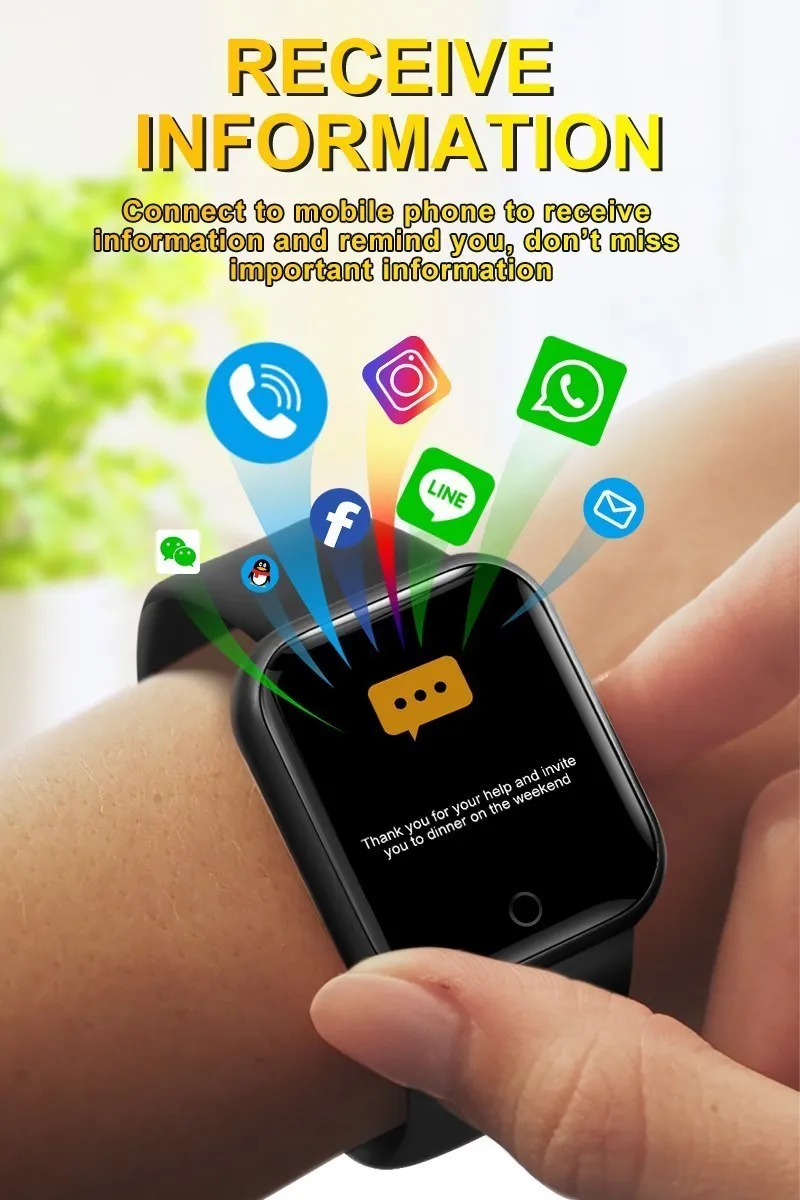 7.latest message display (social medias, included but not limited to SMS/QQ/WeChat/Skype/Facebook/Twitter/Line/WhatsApp)