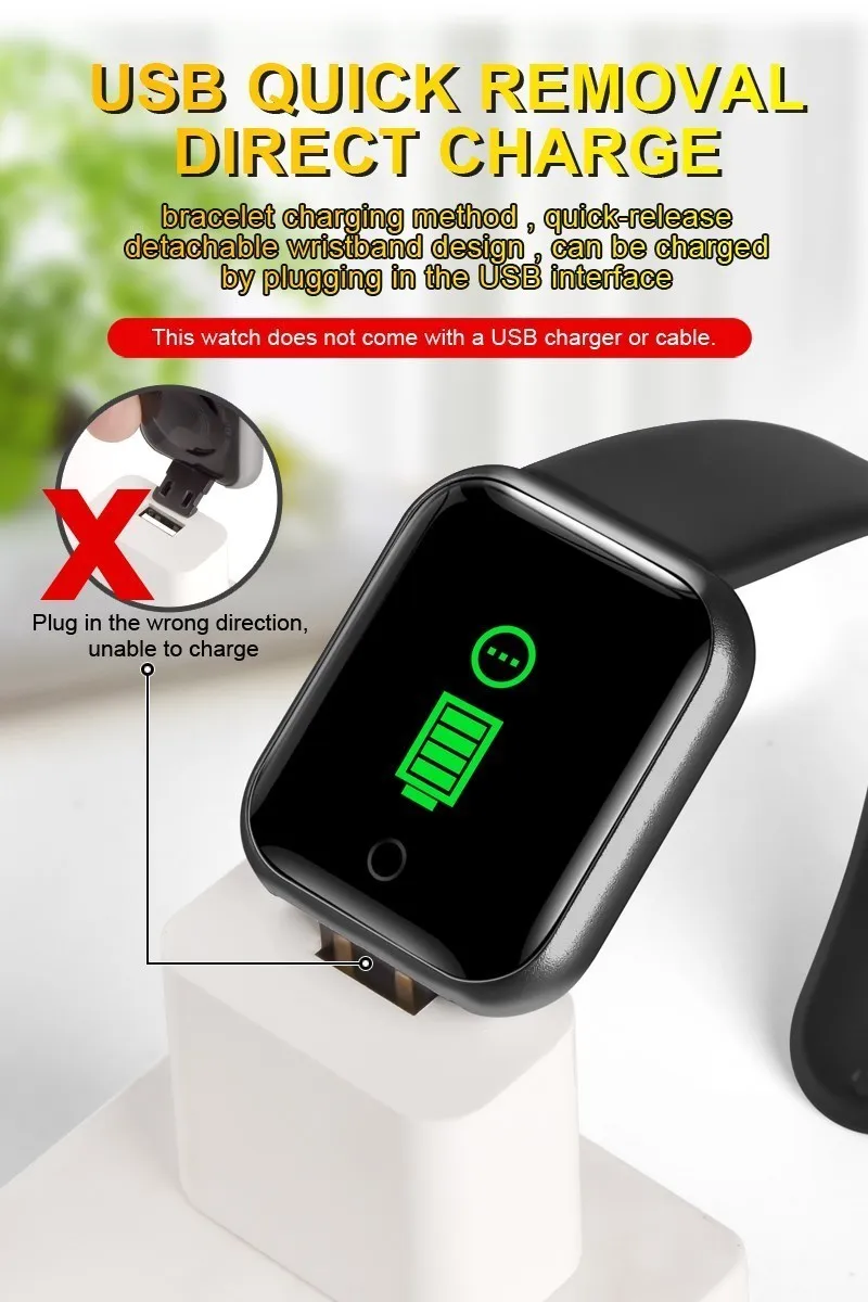 3.For first time use, please charge it for at least half an hour first. the watch may be completely out of battery after a long time of delivery.
