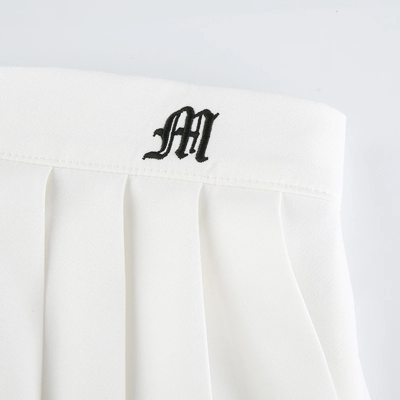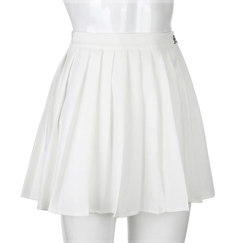 Darlingaga Casual White Letter Embroidery High Waist Woman Skirts y2k Summer Fashion Pleated Skirt Short 2020 Girls Mini Skirt