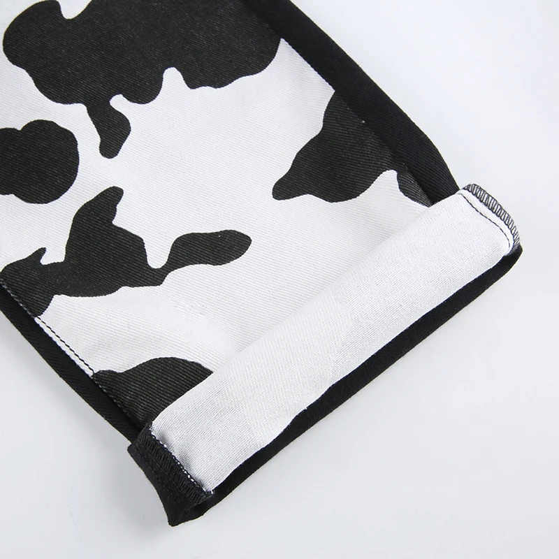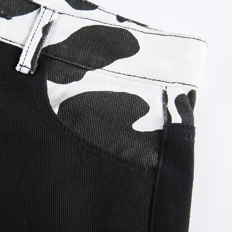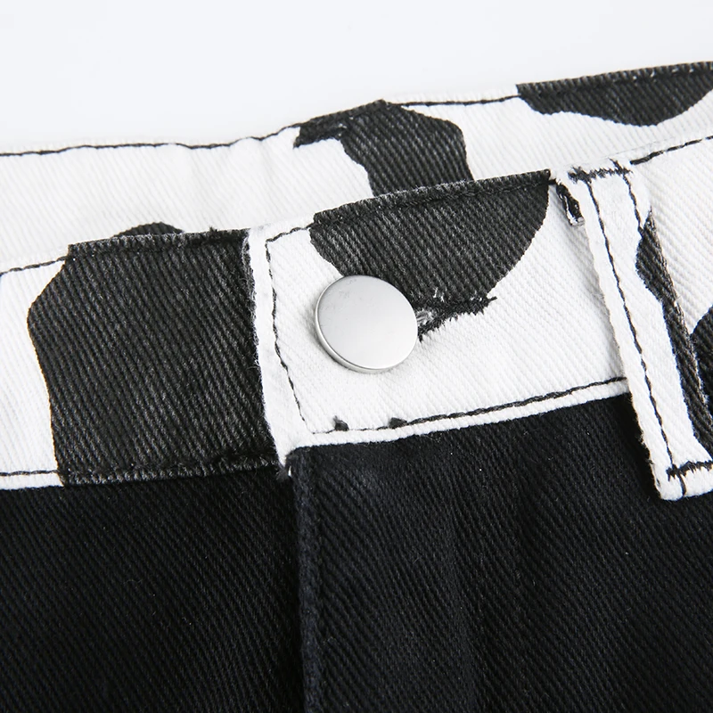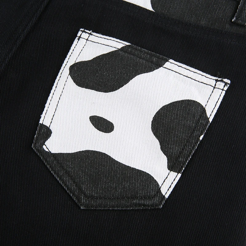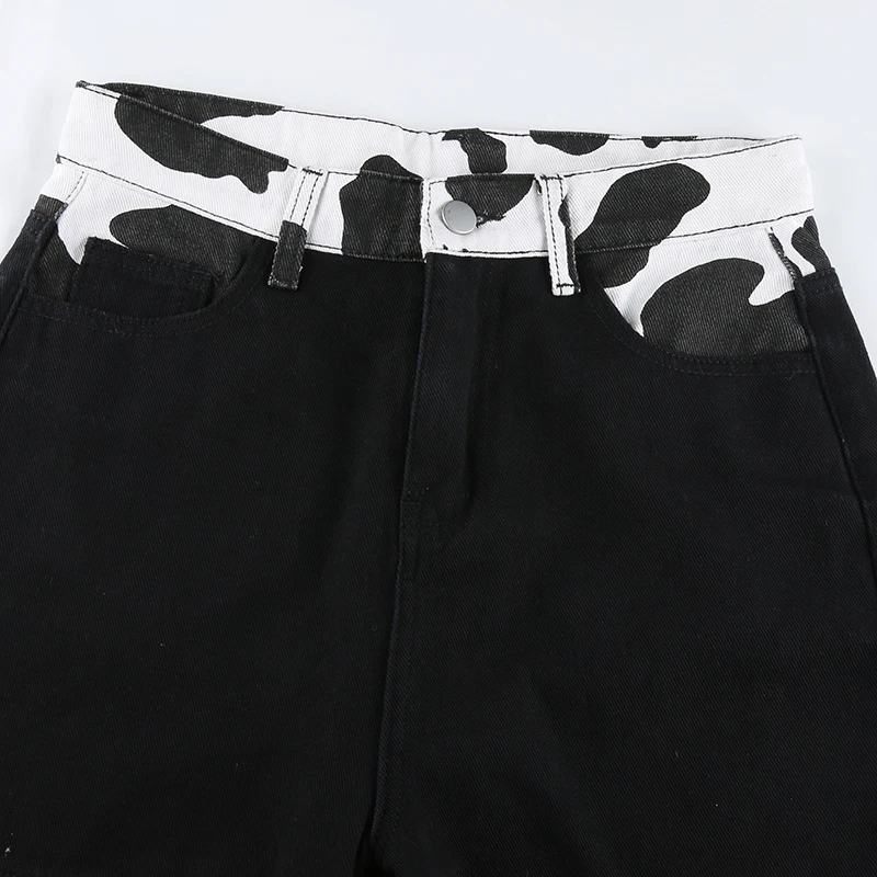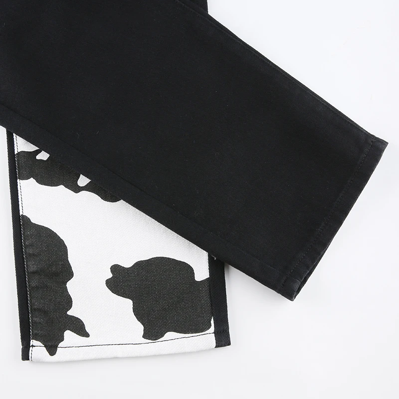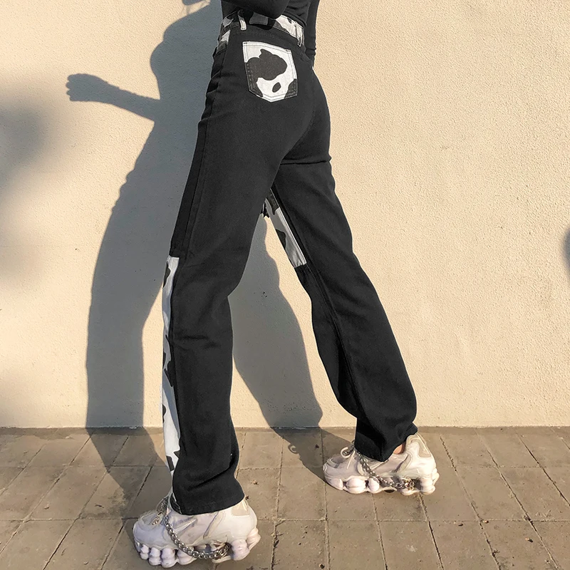 Darlingaga Streetwear Cow Print Y2K Patcahwork High Waist Jeans Straight Slim Woman Pants Vintage Trousers Contrast Color Bottom