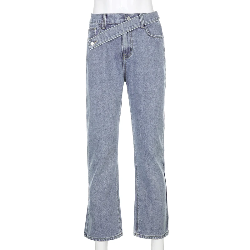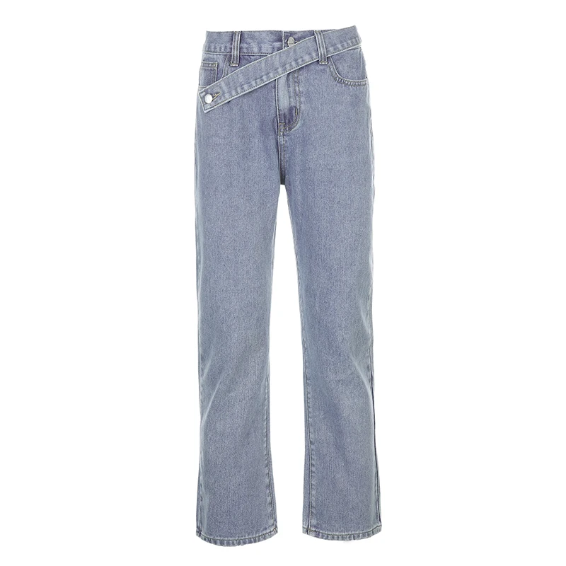Darlingaga Streetwear Straight Solid Woman Jeans Slim Fashion Pockets Long Trousers Autumn Ladies High Waist Denim Pants Bottom