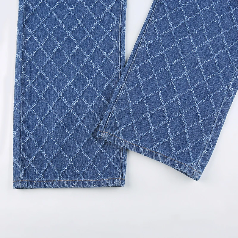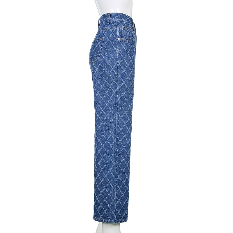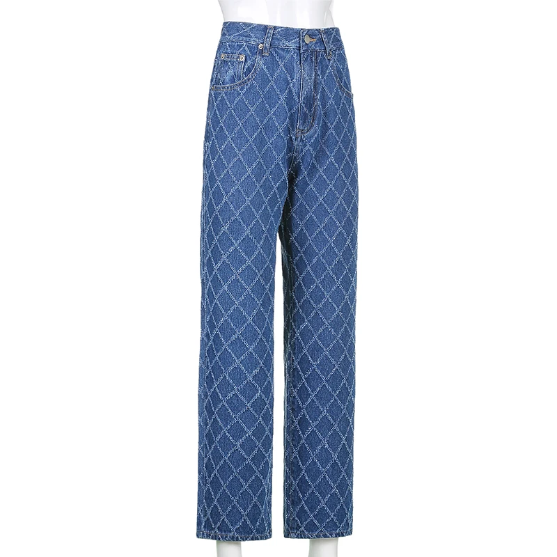 Darlingaga Streetwear Straight Vintage Plaid Jeans Woman Fashion Denim High Waist Pants Burr Checkered Baggy Jeans Y2K Trousers