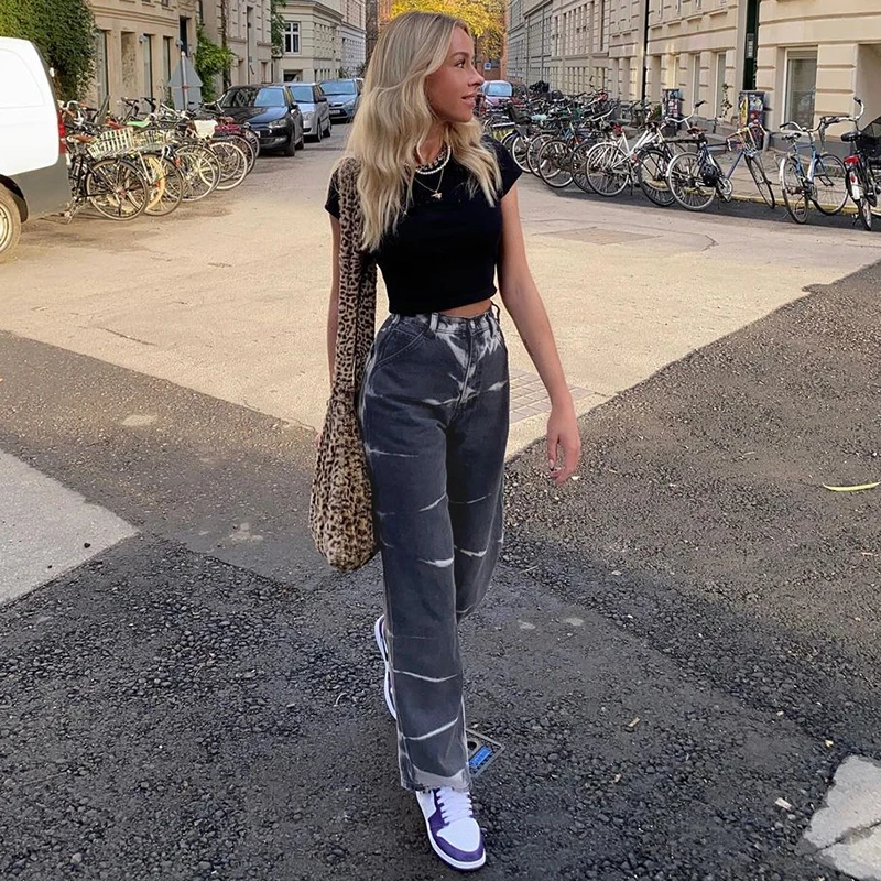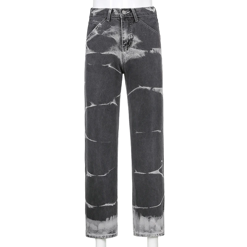 Darlingaga Streetwear Vintage Tie Dye Woman Jeans High Waist Straight Y2K Denim Pants Harajuku Baggy Jeans 90s Trousers Hip Hop