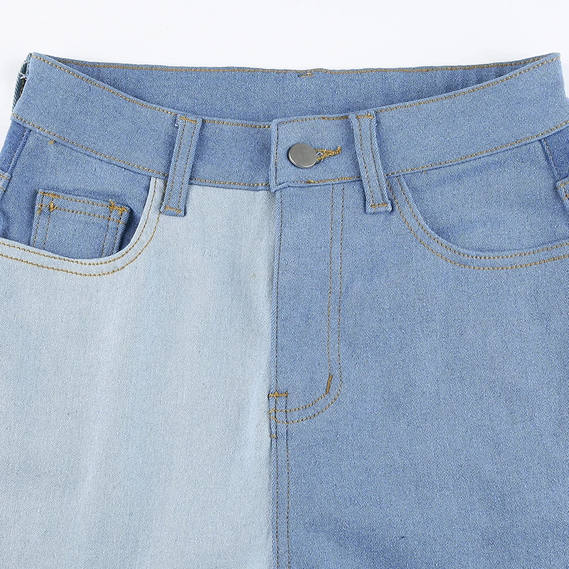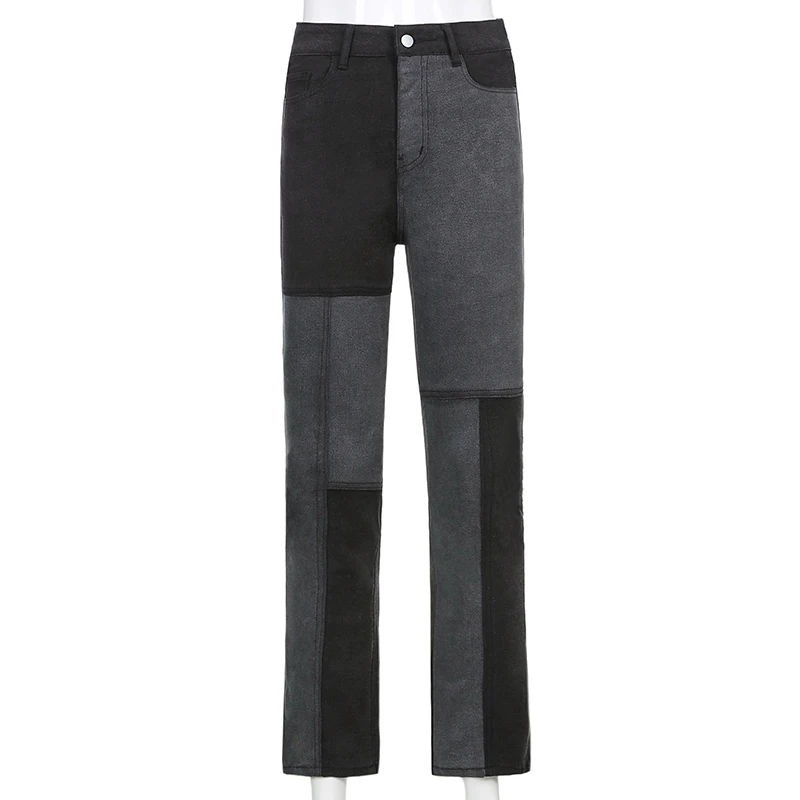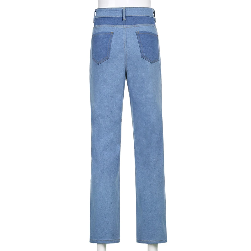 Darlingaga Y2K Aesthetic Vintage Patchwork Jeans Women Streetwear Slim High Waist Pants Contrast Color Denim Mom Jeans Trousers