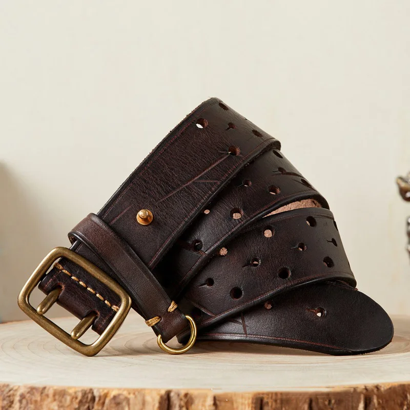 Deepeel Men's Genuine Leather Pure Cowhide Belt Fashion Double Pin Buckle Belts Retro Youth Jeans Waistband Apparel Accessories