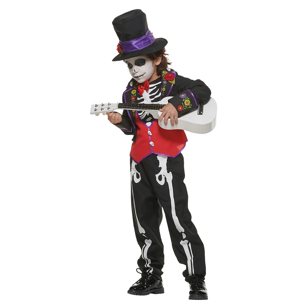Deluxe Children's Day of the Dead Skeleton Cosplay Costume Mexican Boys Girls Halloween Carnival Easter Purim Fancy Dress