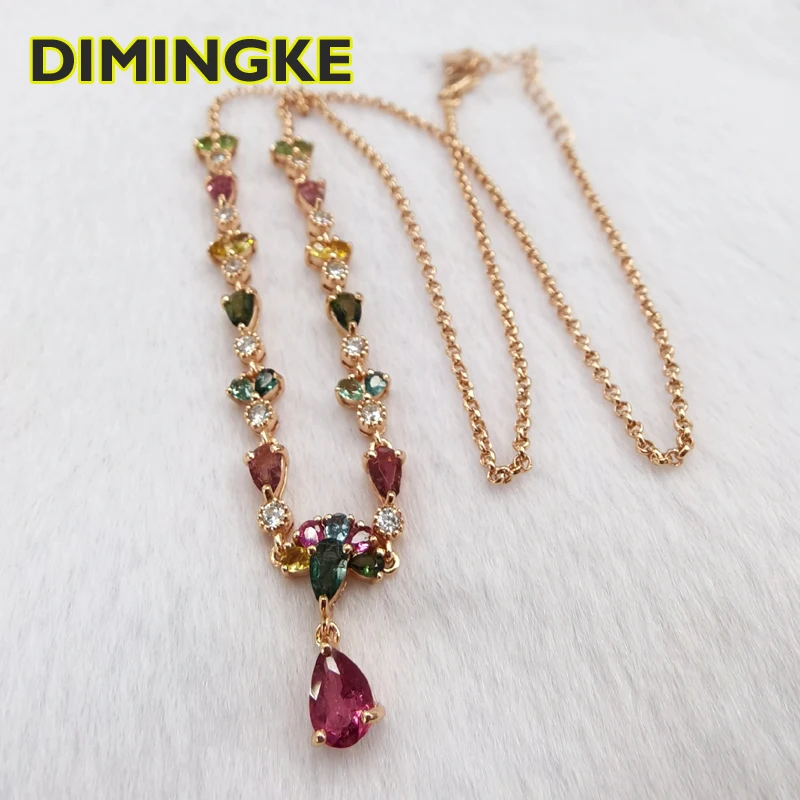 DIMINGKE 100%-S925 Silver Garnet Topaz Tourmaline Necklace Women's Fine Jewelry Party Anniversary Gift