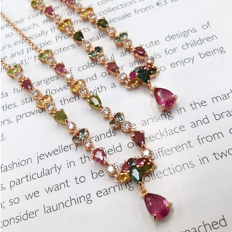 100%-S925 Silver Garnet Topaz Tourmaline Necklace Women's Fine Jewelry Party Anniversary Gift