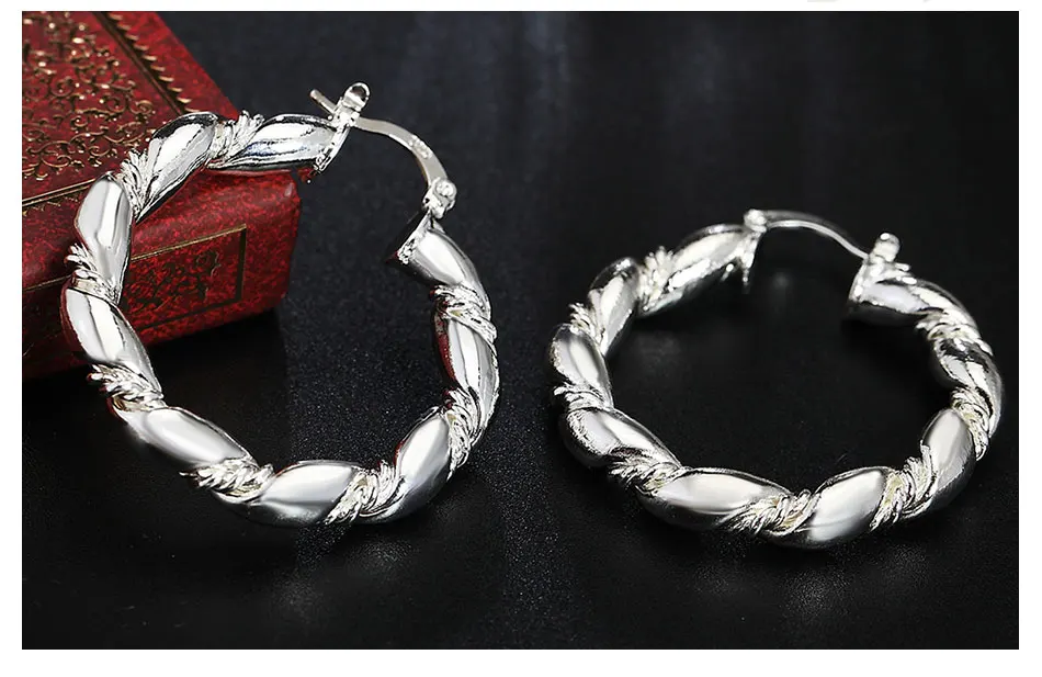 DOTEFFIL 925 Sterling Silver Twisted Rope Loop 38mm Circle Hoop Earring For Woman Fashion Party Wedding Engagement Party Jewelry