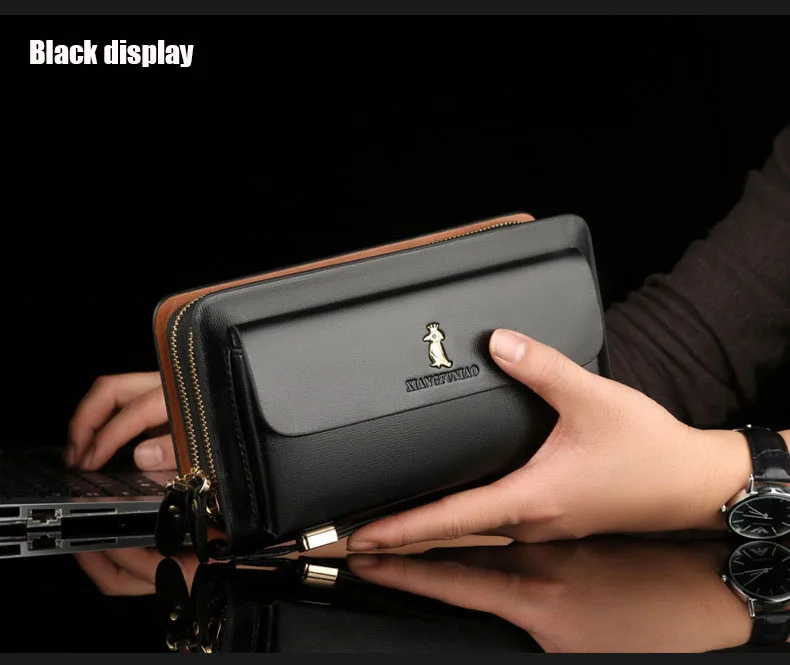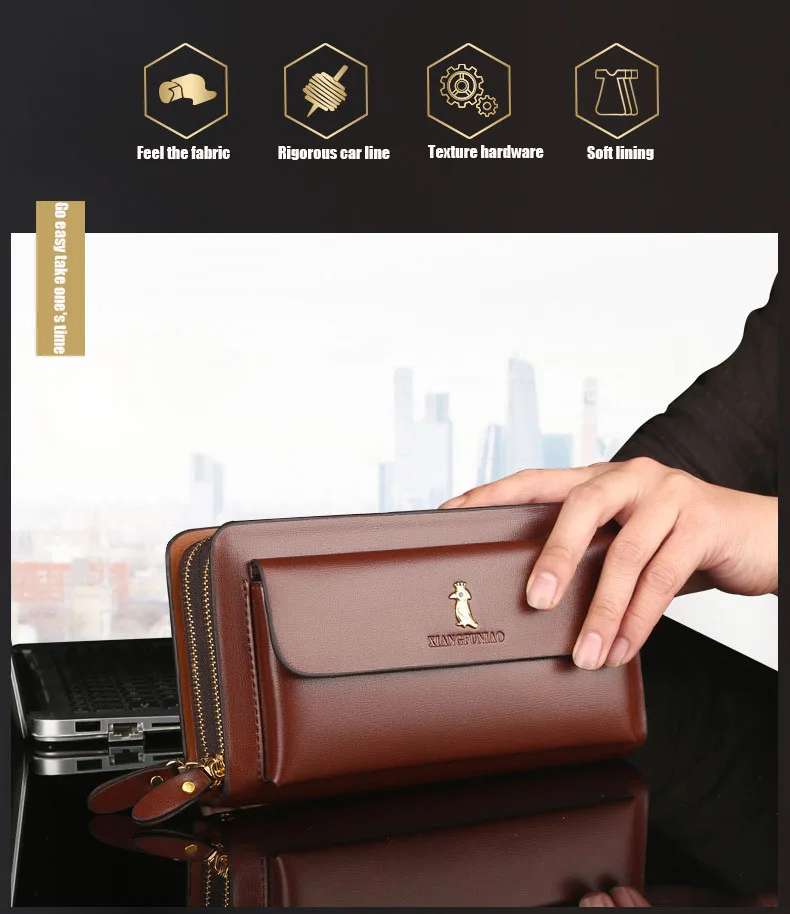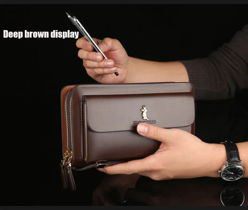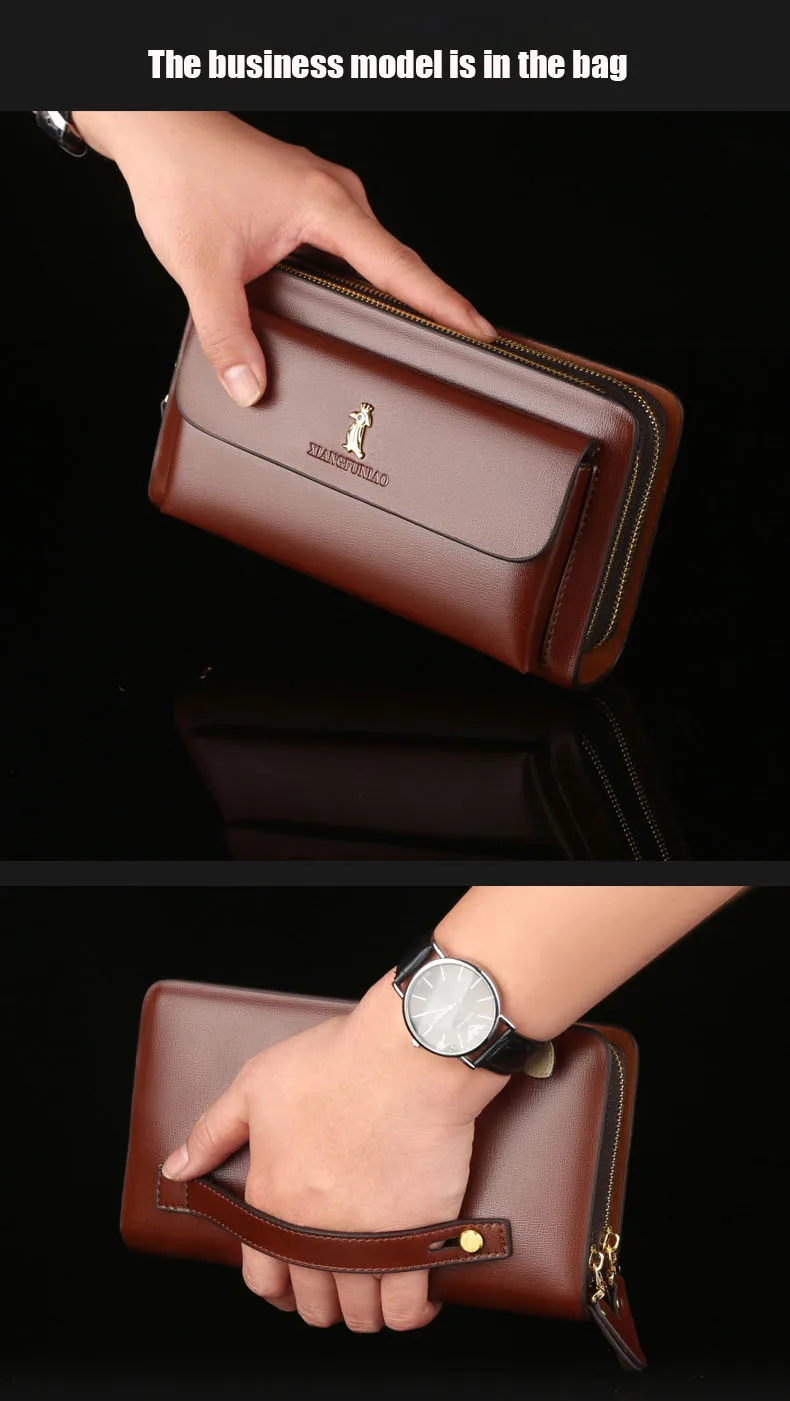 Double zipper men's wallet Retro luxury clutch bag leather wallet Organizer big capacity passport cover male portefeuille homme